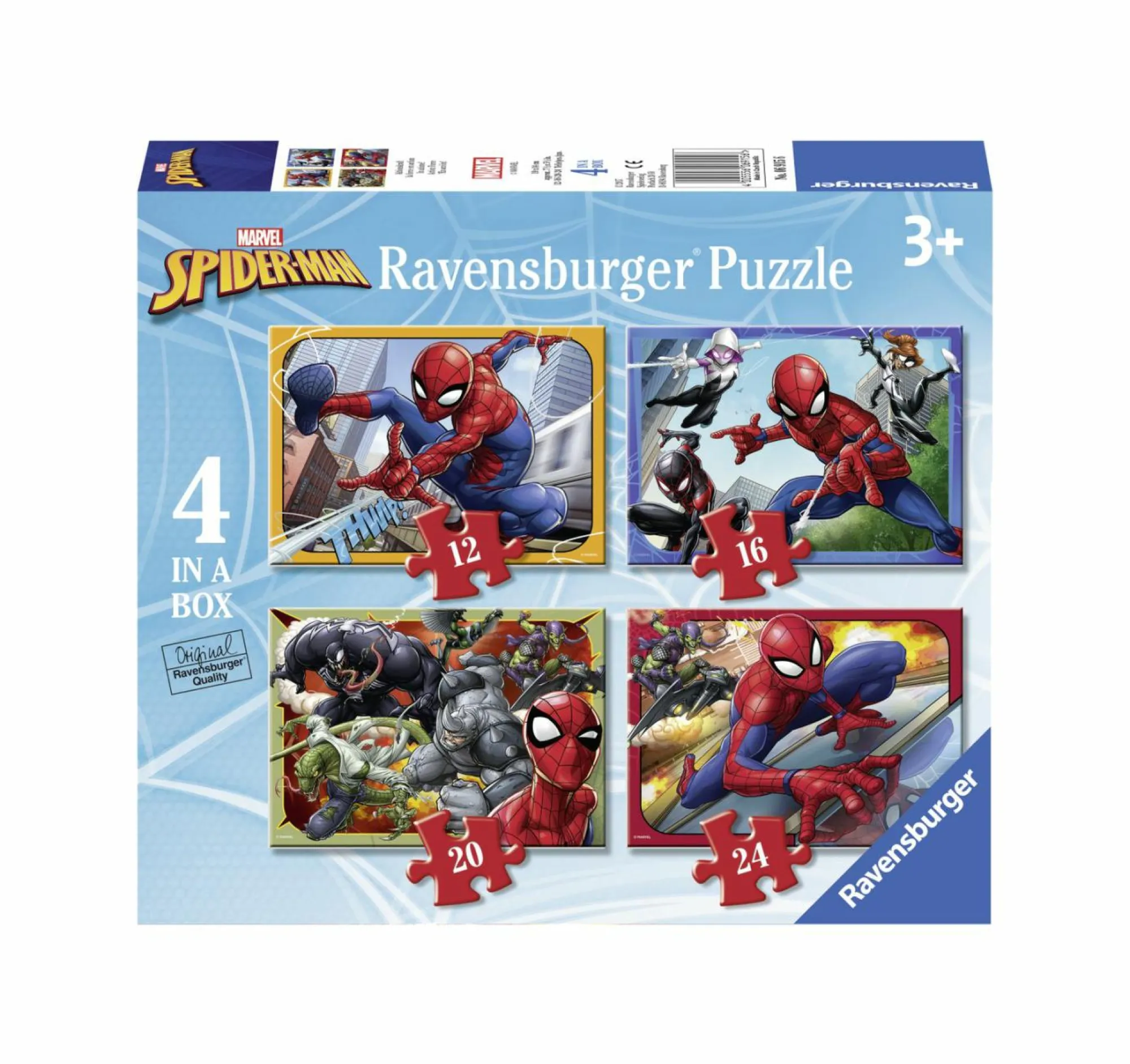 Quattro puzzle Ravensburger in formato progressivo da 12, 16, 20 e 24 pezzi.