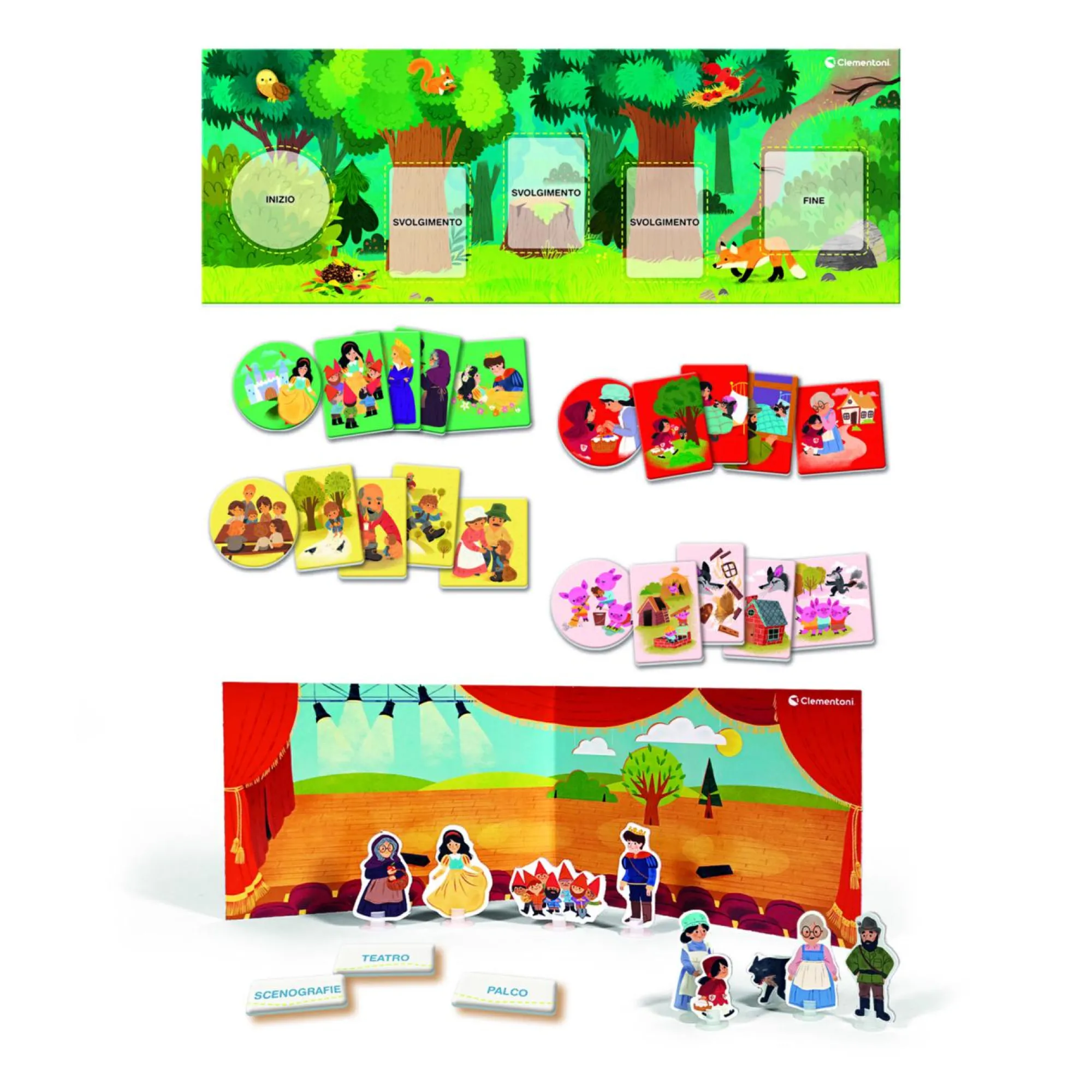 Il gioco perfetto per i piccoli narratori che potranno ricostruire le fiabe, conoscere la struttura narrativa e le basi del teatro e imparare a raccontare tante storie.