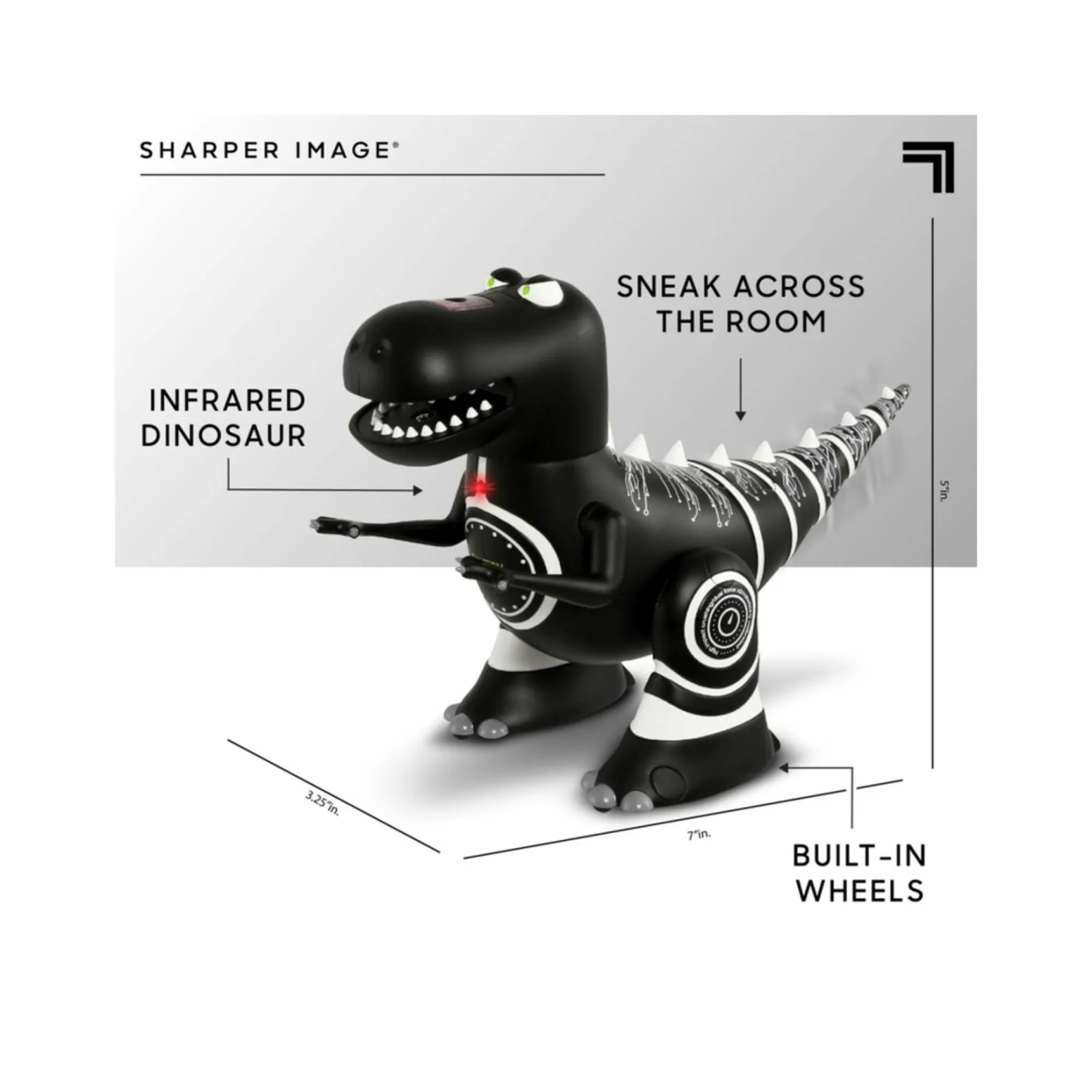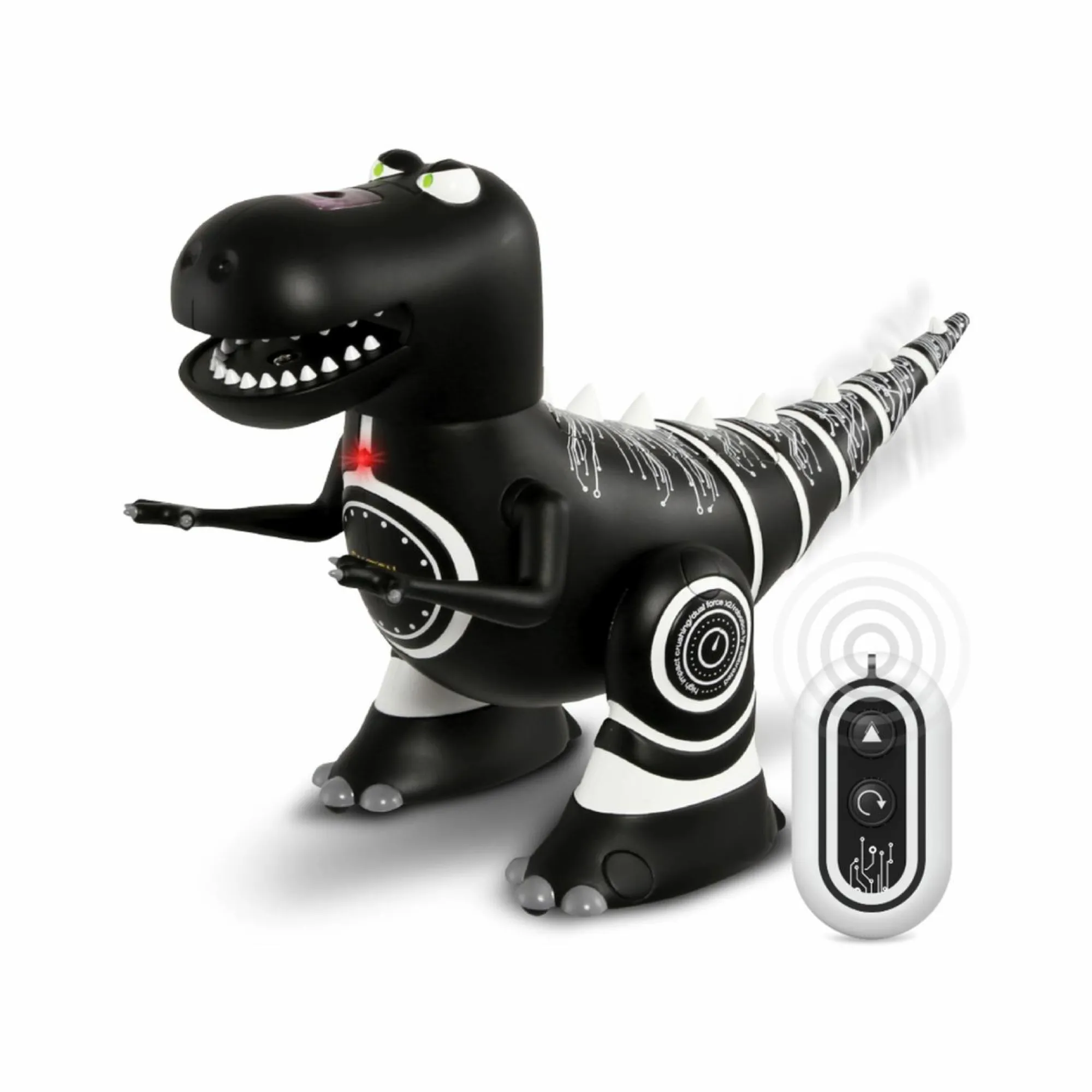 RUOTE INTEGRATE: il dinosauro presenta delle mini ruote sotto le sue zampe artigliate che lo rendono facile da manovrare sulla maggiorparte delle superfici. Per un utilizzo ottimale, utilizzarlo su superfici piane e lisce
