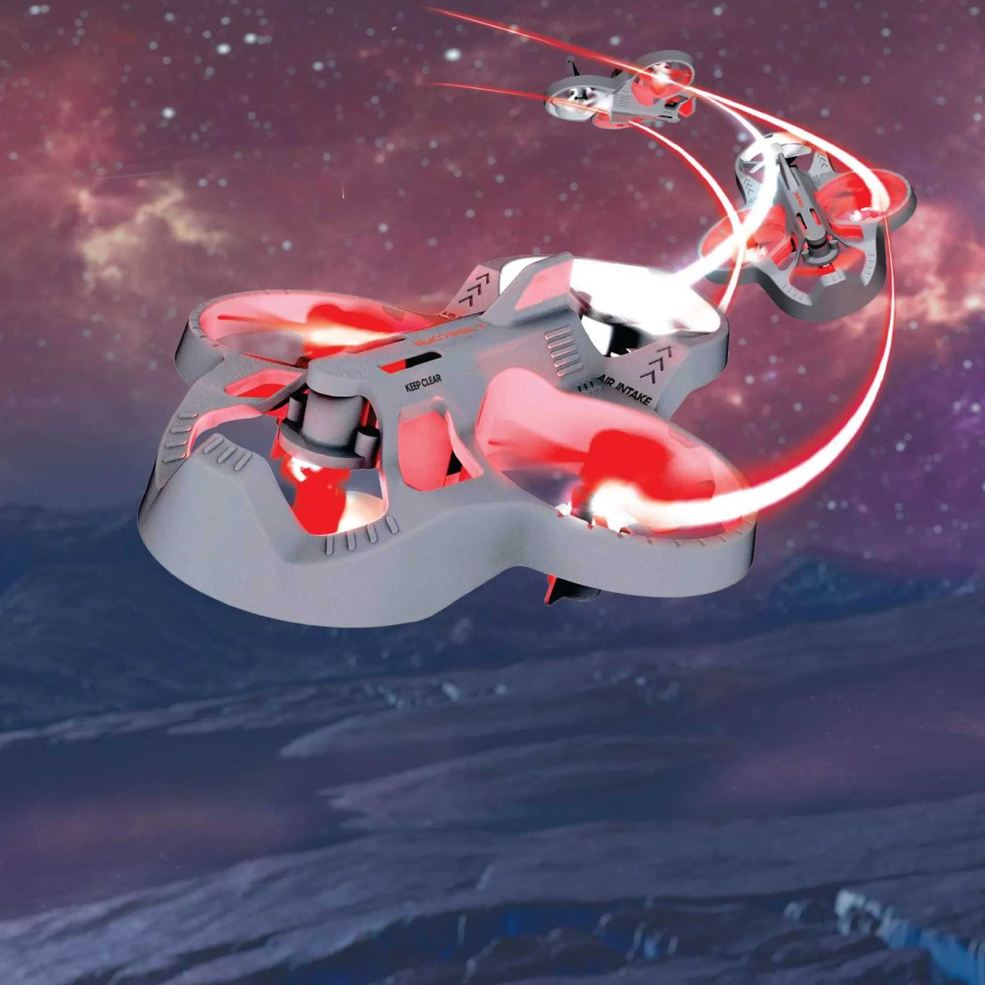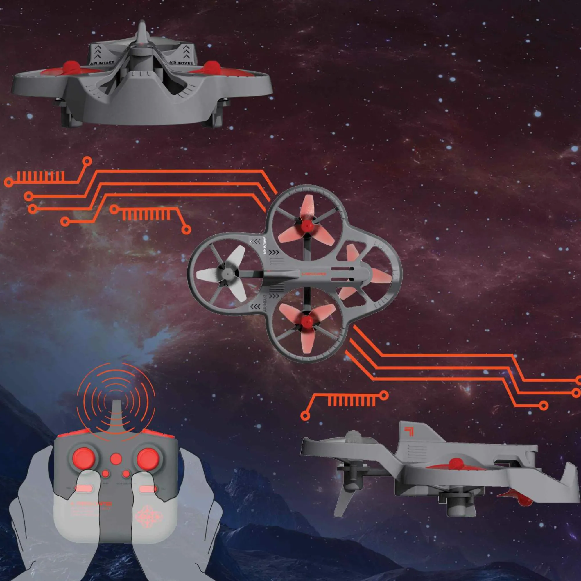 Esegui acrobazie a 360 gradi! La stabilizzazione giroscopica e il controllo automatico di orientamento aiutano a mantenere il drone stabile mentre voli, ti immergi e sali. Le luci a LED si illuminano al buio per voli notturni straordinari!