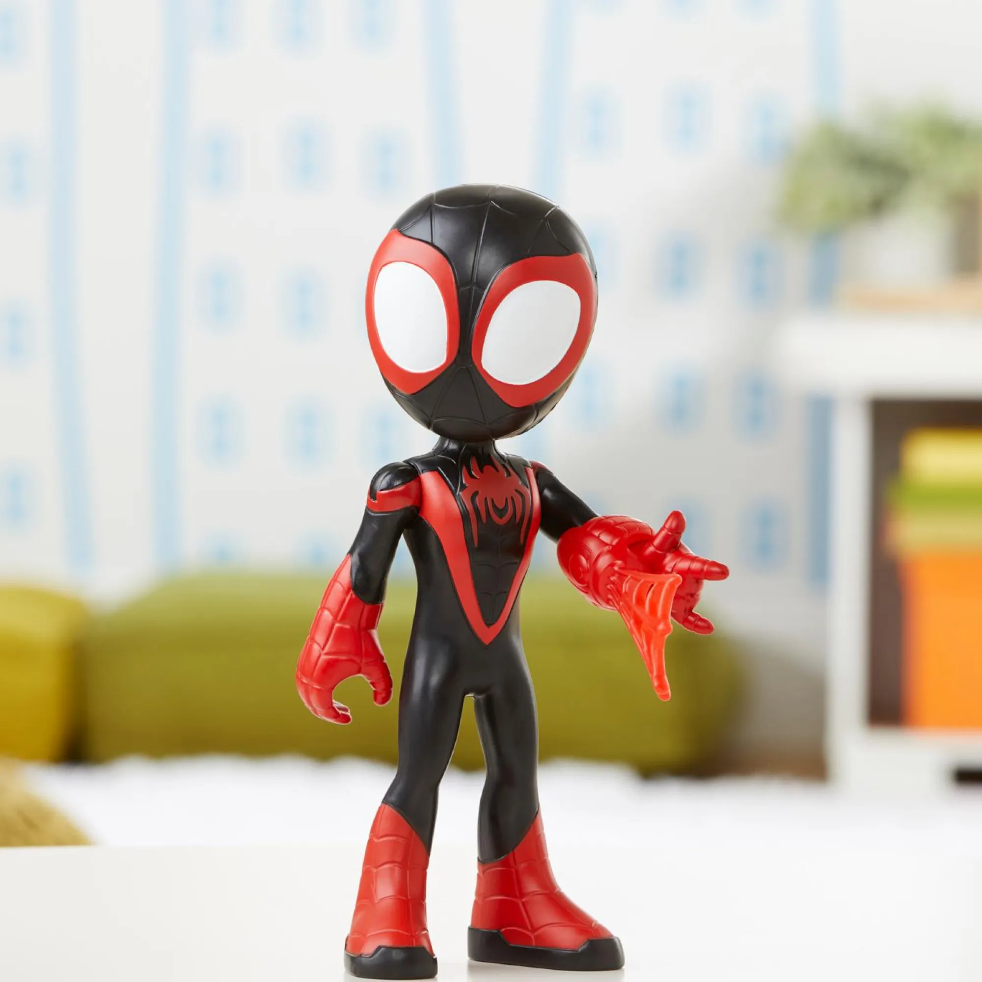 PUNTI DI SNODO SU TESTA E BRACCIA: la testa e le braccia dell’action figure di Miles Morales si muovono in modo che i bambini e le bambine in età prescolare possano far assumere all’eroe pose dinamiche per ricreare le scene della serie TV