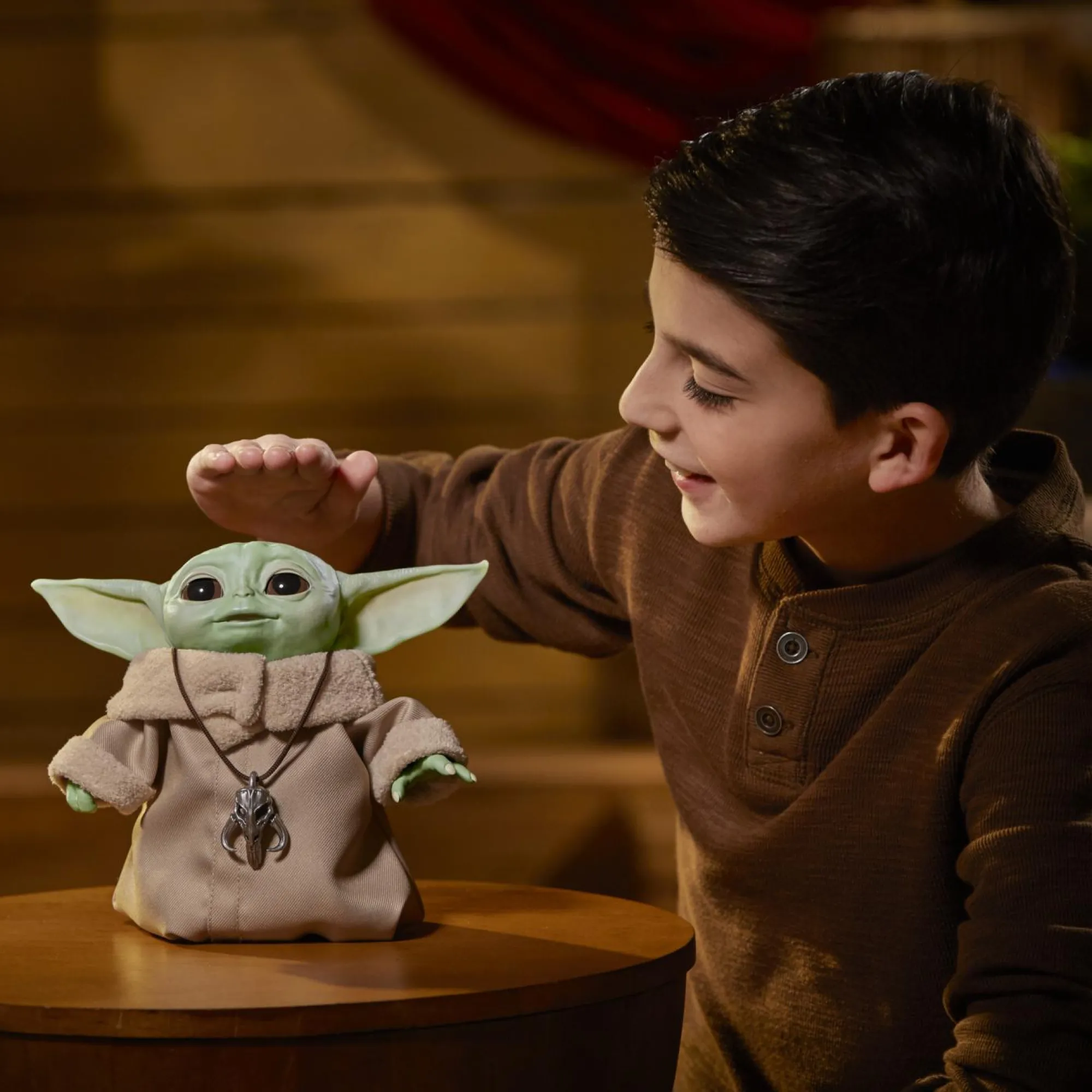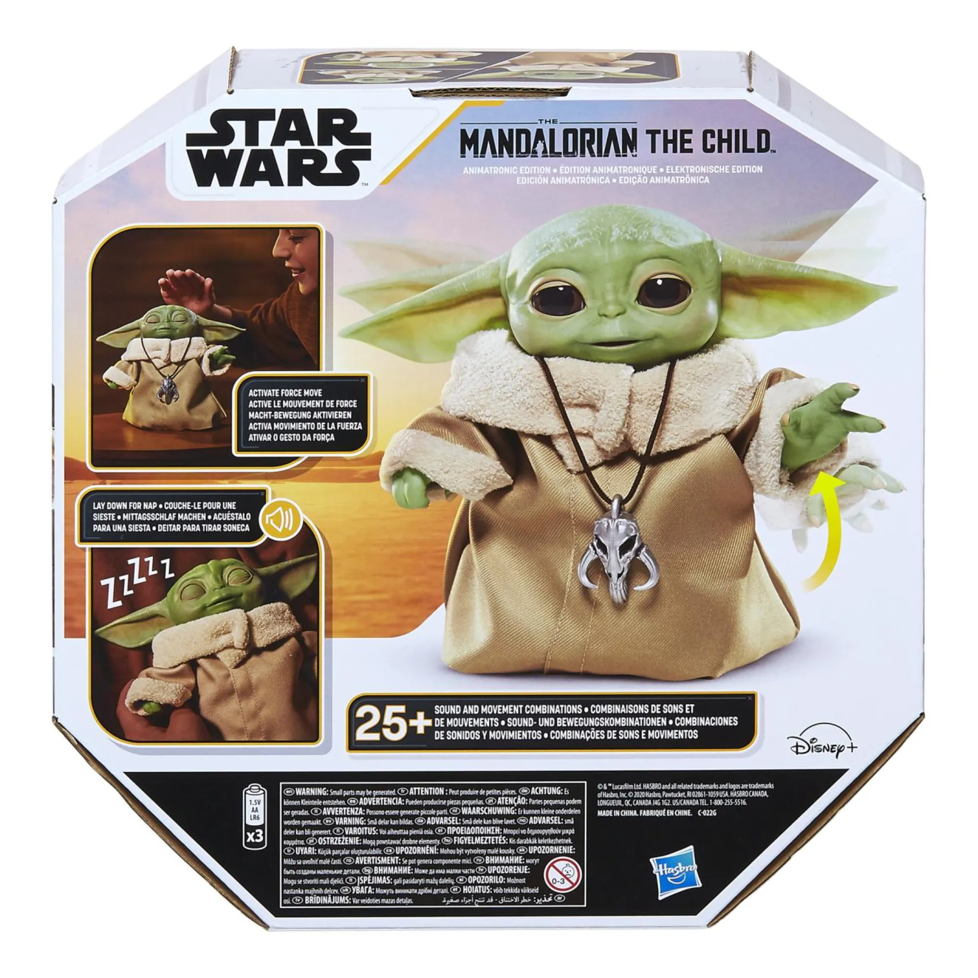 SUONI ISPIRATI ALLA SERIE: Tocca la parte superiore della testa di The Child Animatronic Edition per attivare gli effetti sonori ispirati a The Mandalorian, tra cui espressioni di felicità ed entusiasmo, risatine, balbettii, stanchezza e sonno, oltre agli effetti sonori della Forza