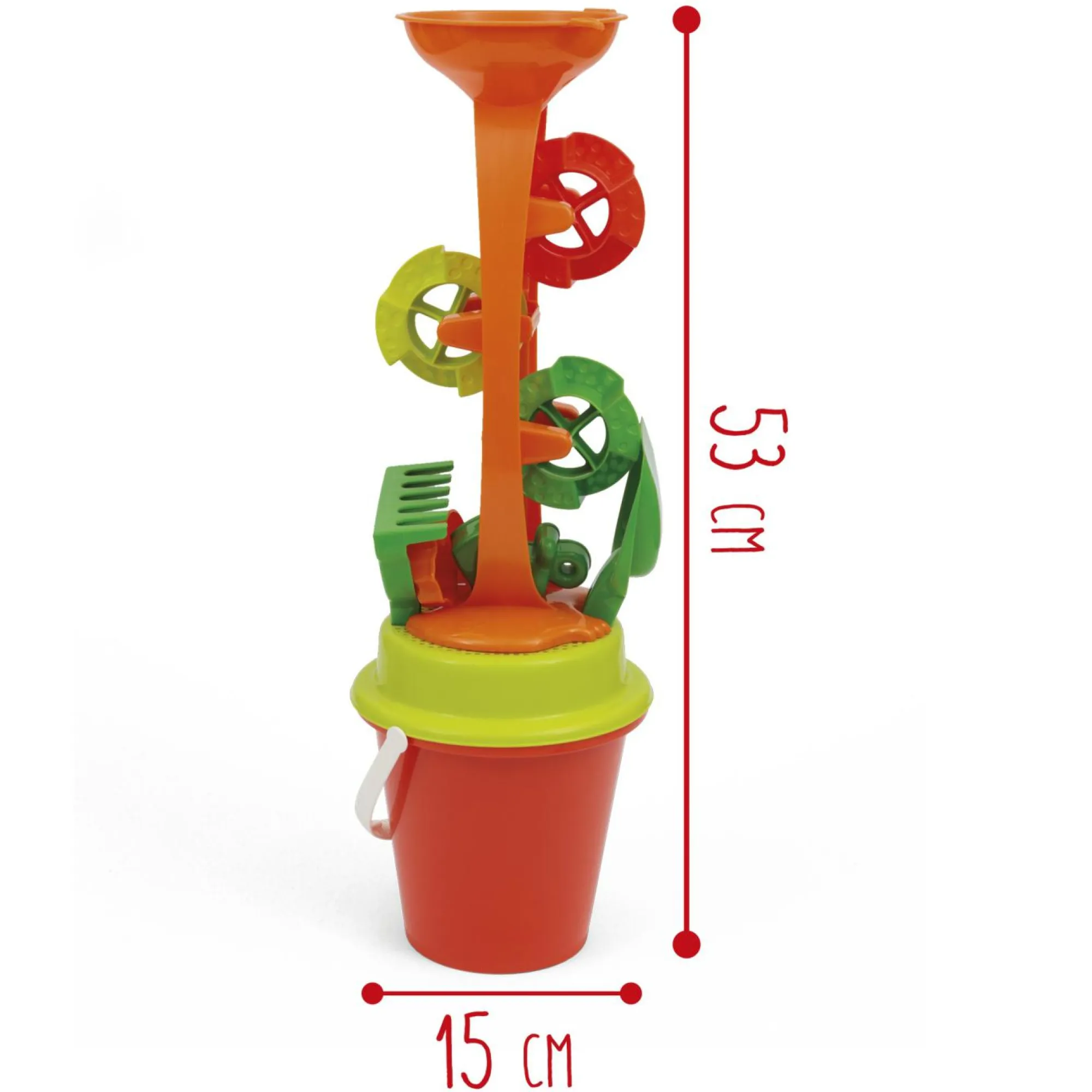 4 accessori inclusi: rastrello, paletta e 2 formine