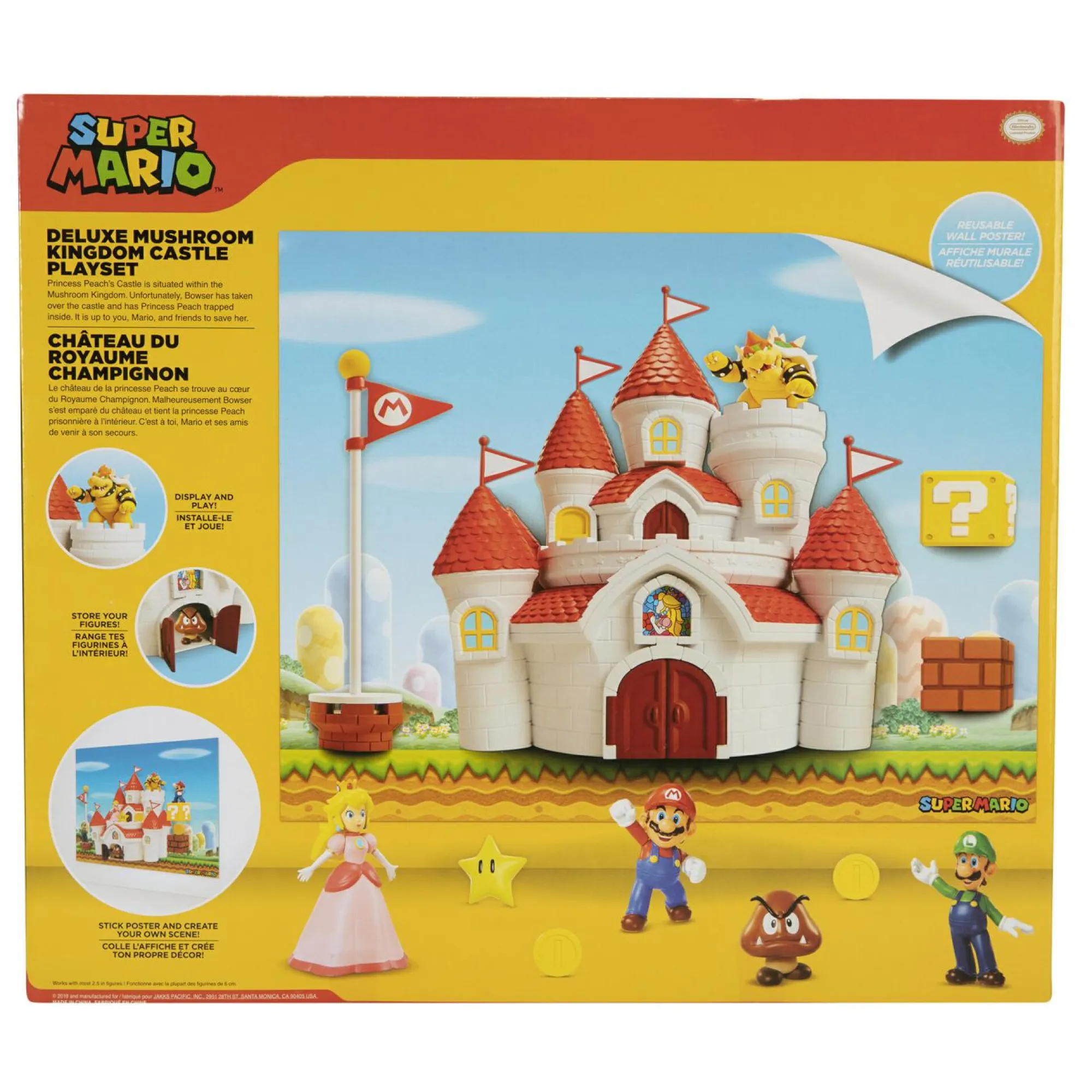 Ricrea le avventure di Bowser con questo playset! Include il Castello di Peach, 5 personaggi, e accessori. Salva il Regno dei Funghi e Peach dalle grinfie di Bowser!