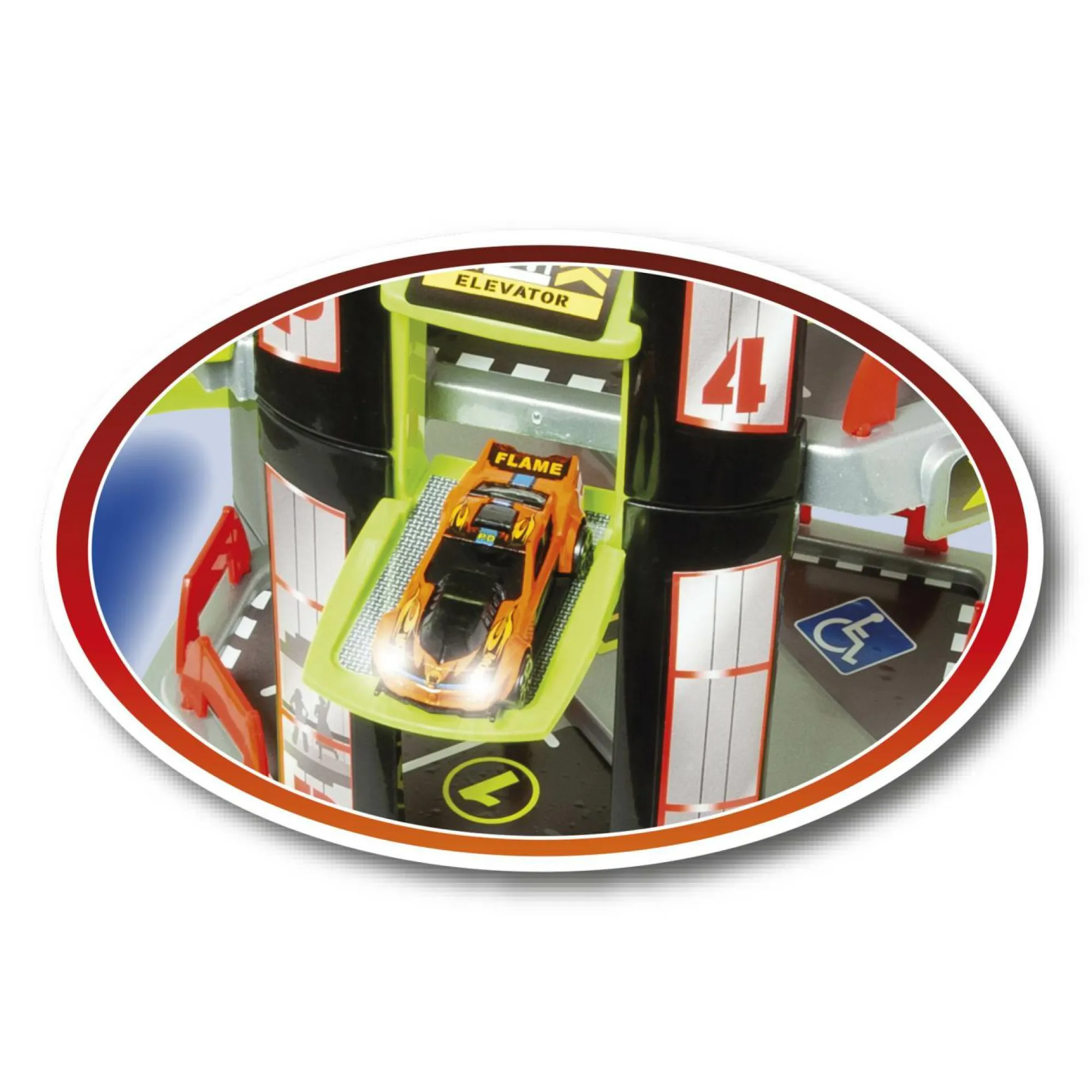 – Parcheggia le auto sui piani o fagli percorrere i piani utilizzando le rampe laterali! -
