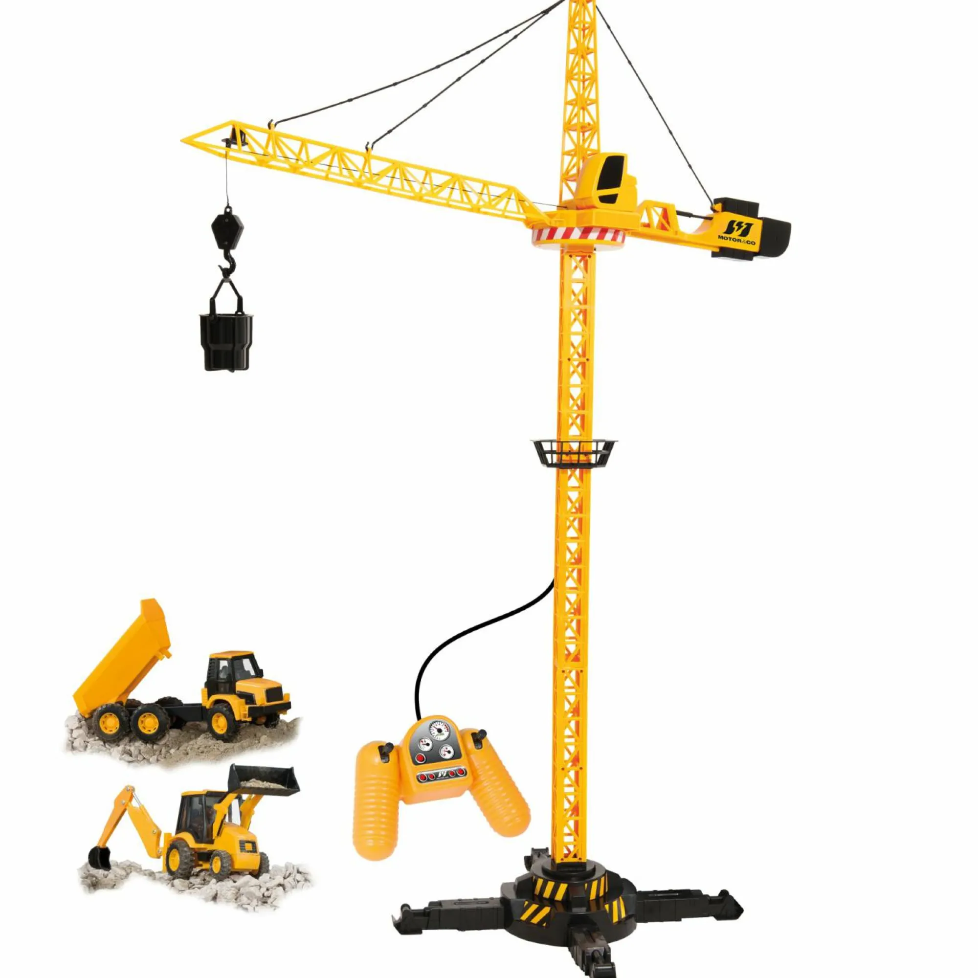 Dettagli ProdottoPer i veri appassionati del lavoro in cantiere!Gru filoguidata con supporto da terra, braccio rotante a…
