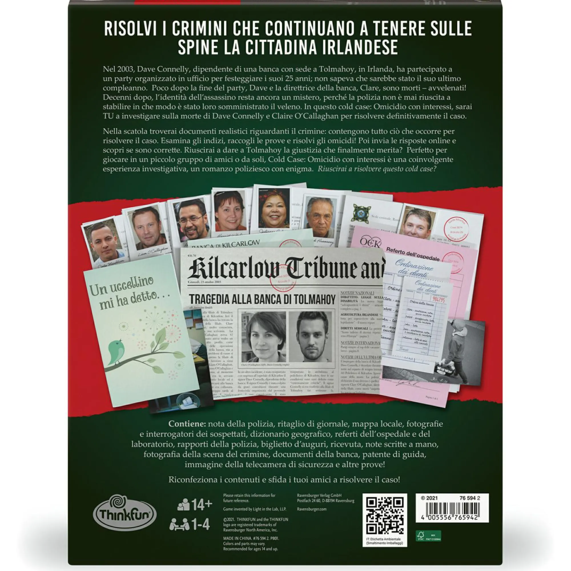 Immergiti nel mistero! Nella serie Cold Case, sei stato convocato per indagare sui casi irrisolti di vittime assassinate decenni fa, mettendo insieme i dettagli che la polizia non ha mai potuto trovare. All’interno della scatola troverai materiali realistici relativi al crimine e una storia complessa che contiene tutto il necessario per risolvere il caso. Segui gli indizi e invia le tue risposte online per poter finalmente smascherare gli assassini. Ottimo per giocare insieme a piccolo gruppo di amici o anche singolarmente, Cold Case integra la risoluzione di puzzle e la narrativa criminale in un’esperienza investigativa coinvolgente.