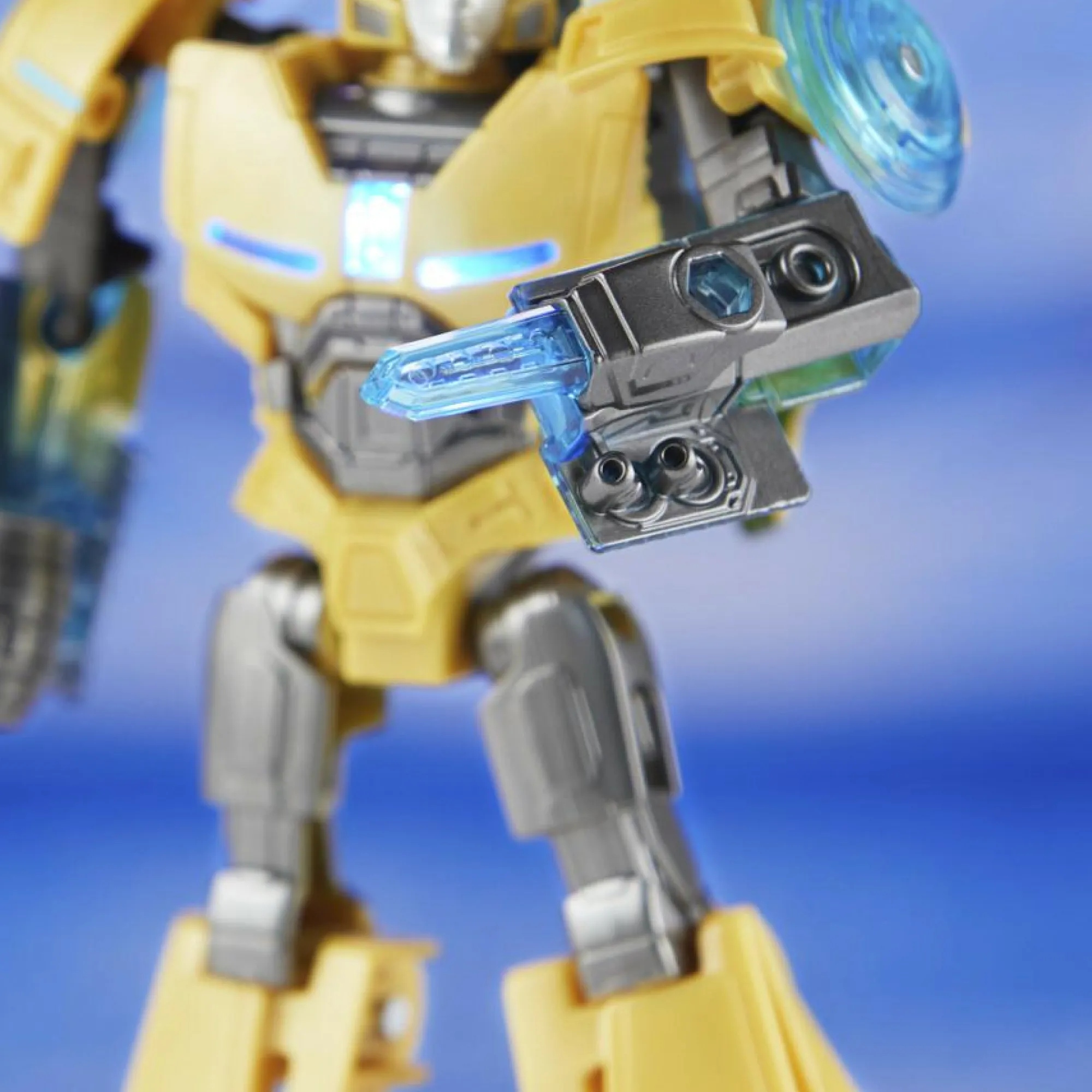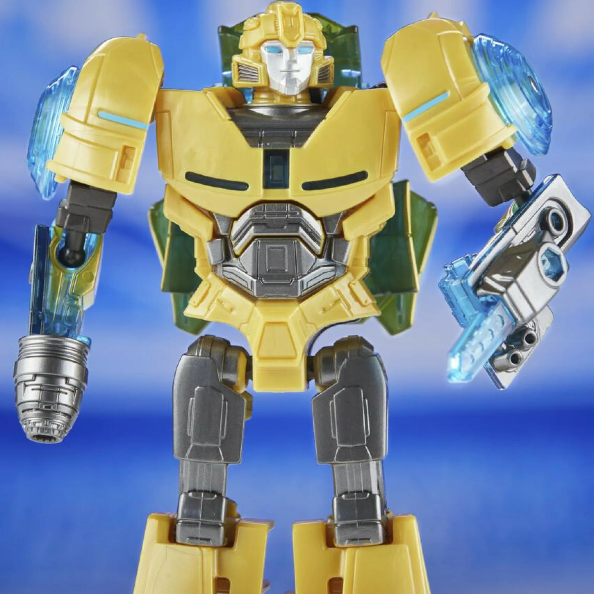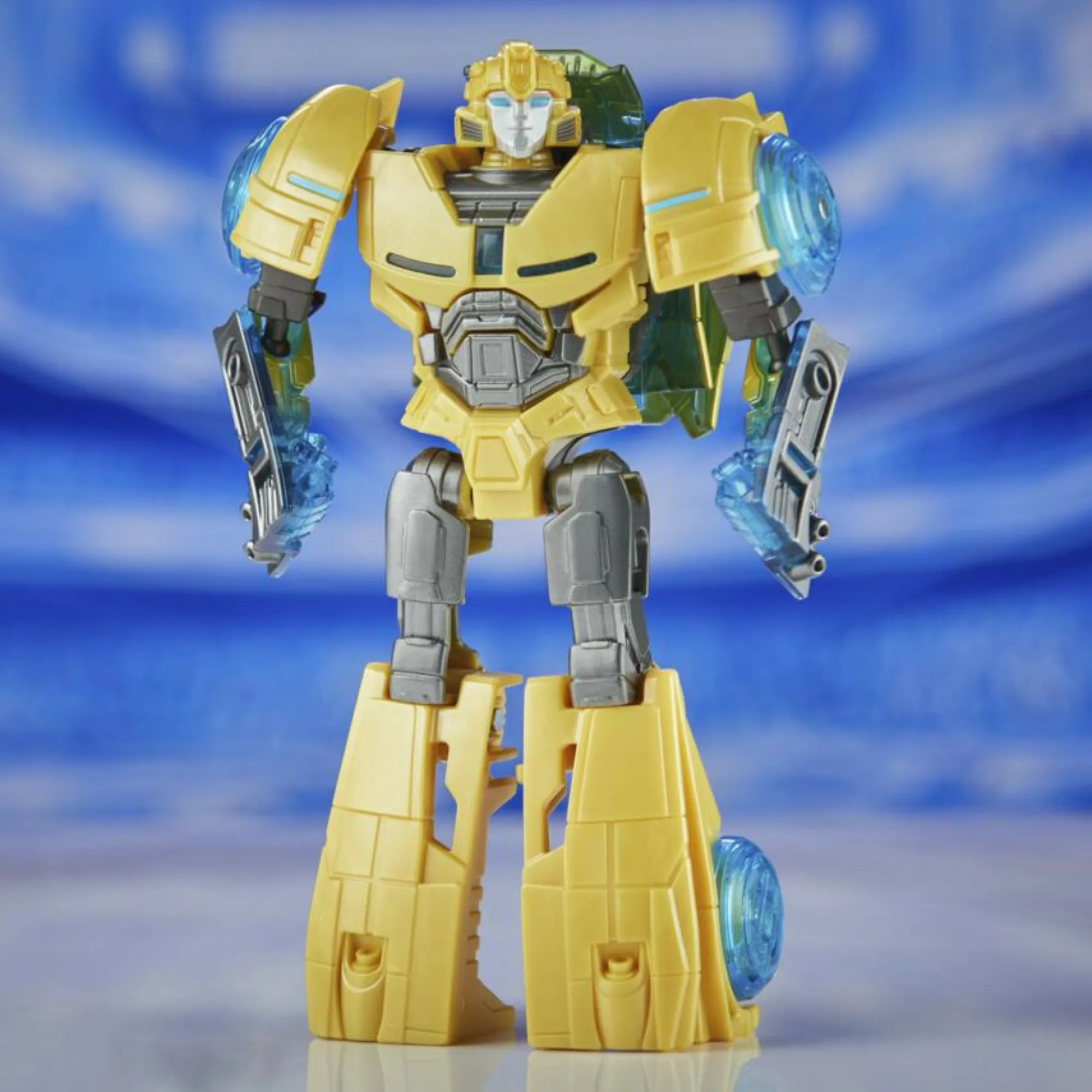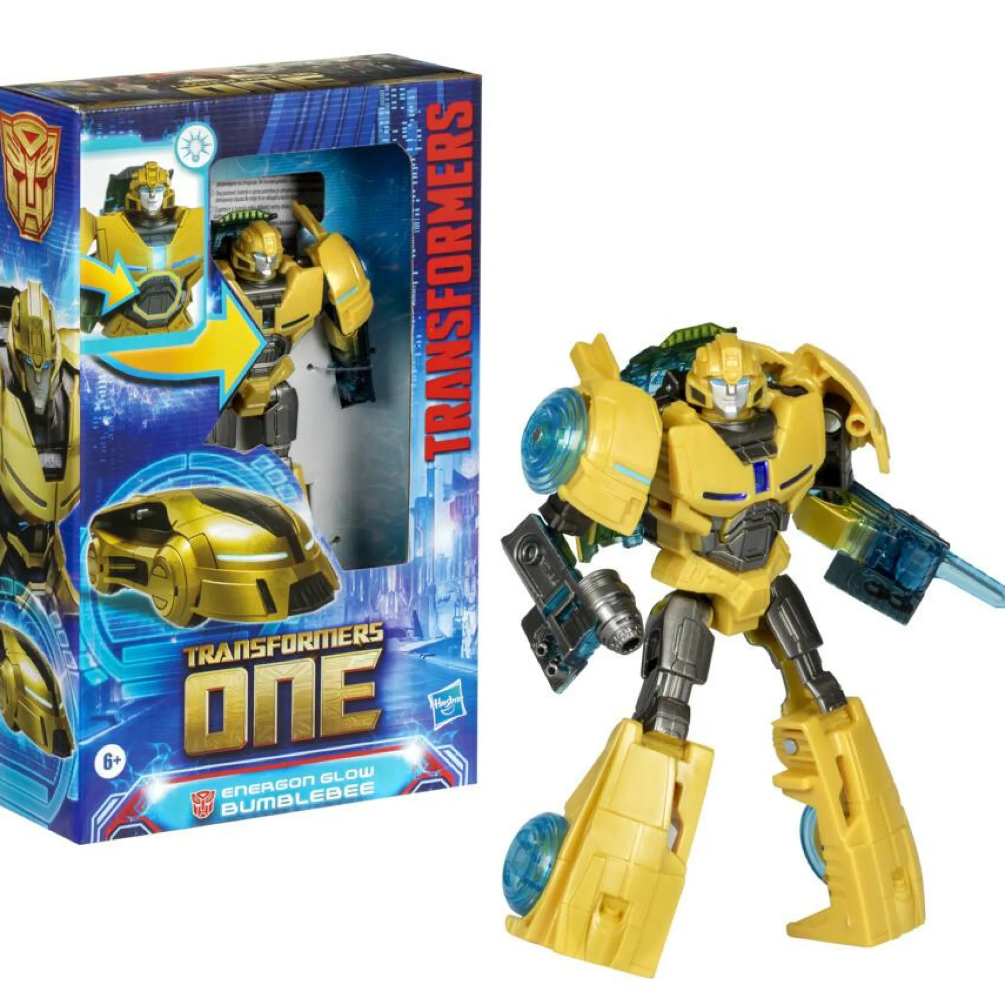 ACTION FIGURE CONVERTIBILE ISPIRATA AL NUOVO FILM TRANSFORMERS: il giocattolo Energon Glow Bumblebee è ispirato al film Transformers One e si trasforma da robot a modalità auto cibernetica per un fantastico gioco 2-in-1.