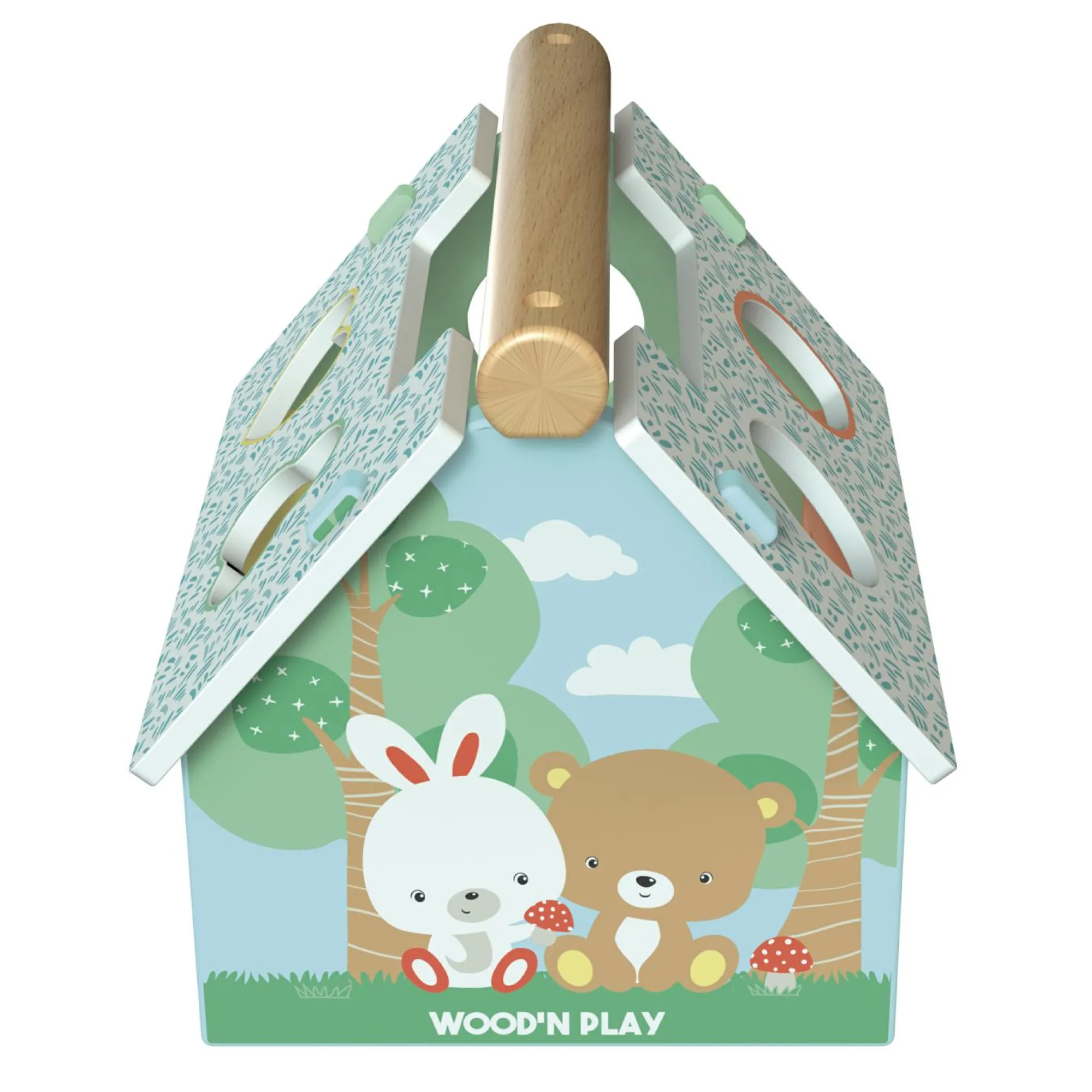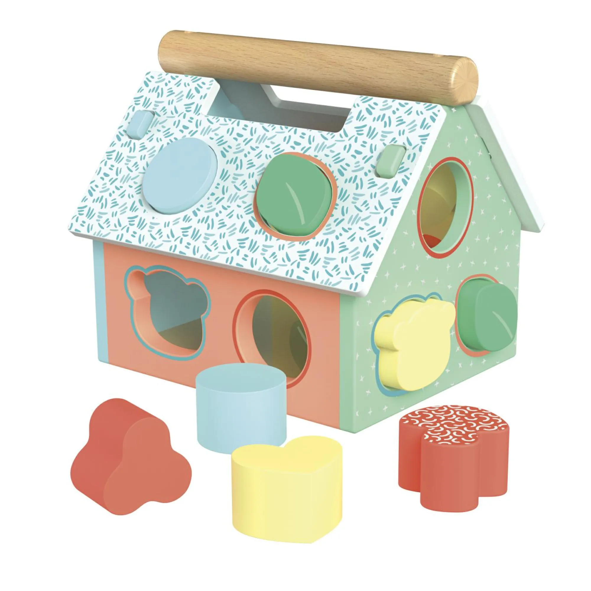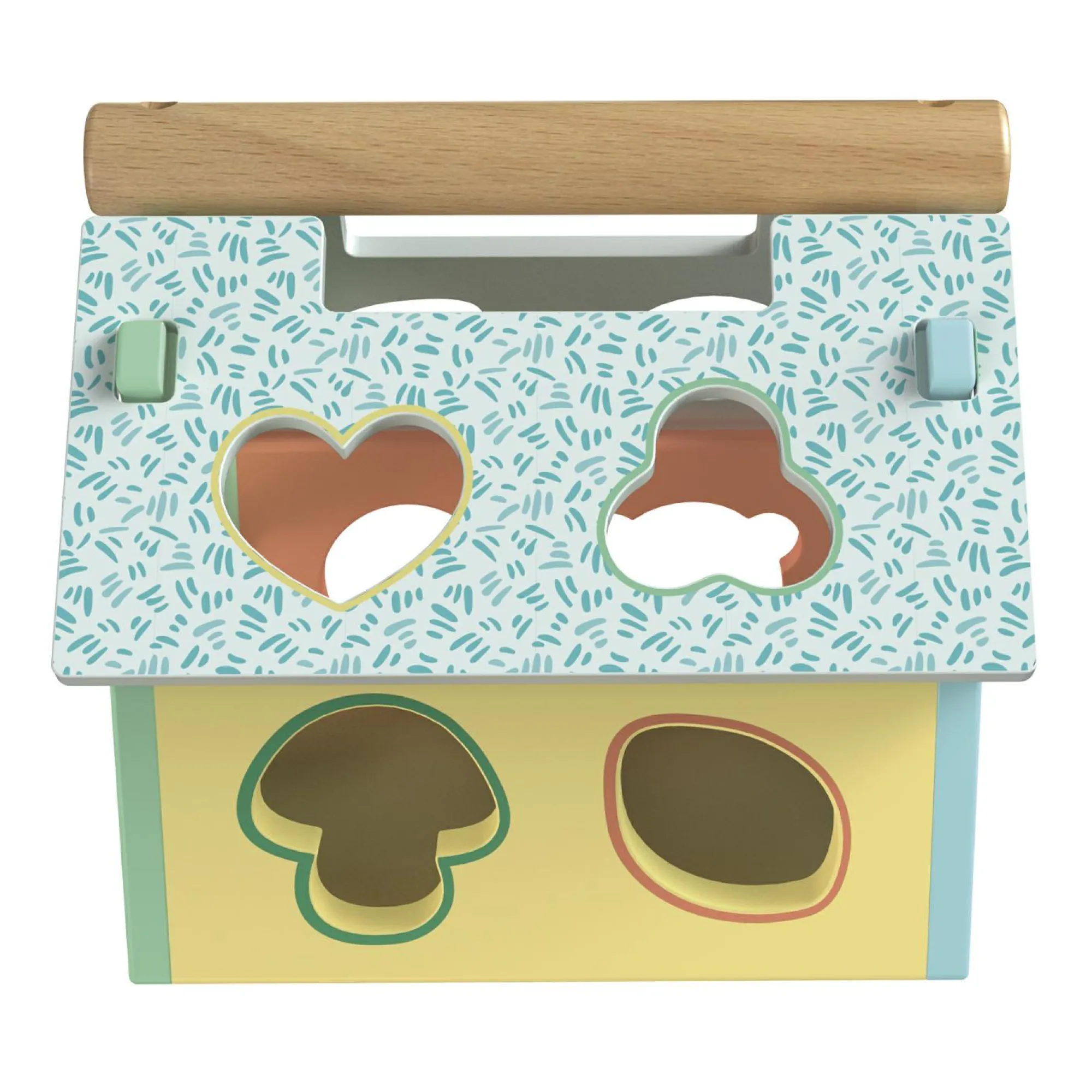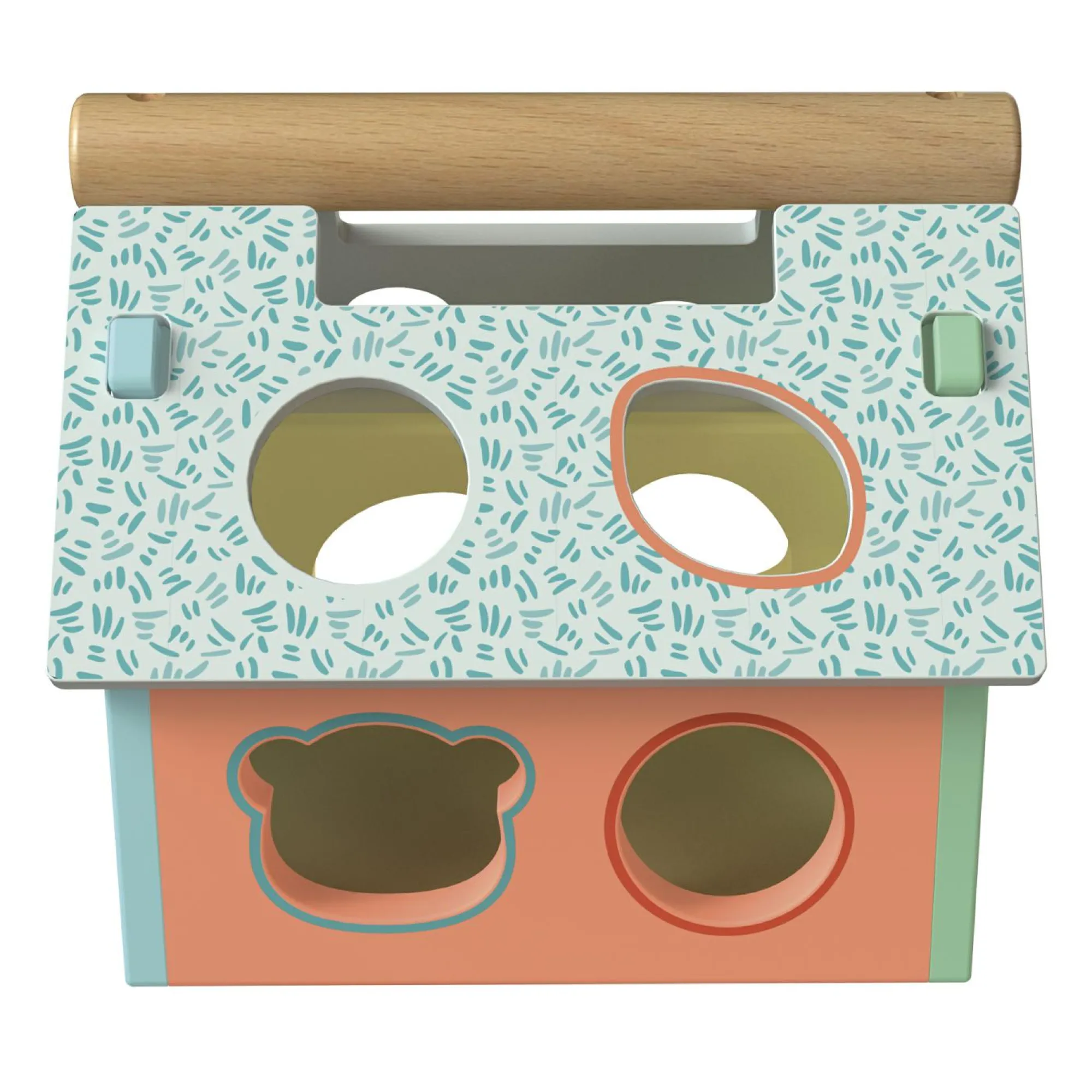 Il bambino si divertirà a cercare la fessura corrispondente al blocchetto per riuscire ad inserirlo all’interno della casetta. Grazie alla pratica maniglia, la casetta si può portare facilmente ovunque.