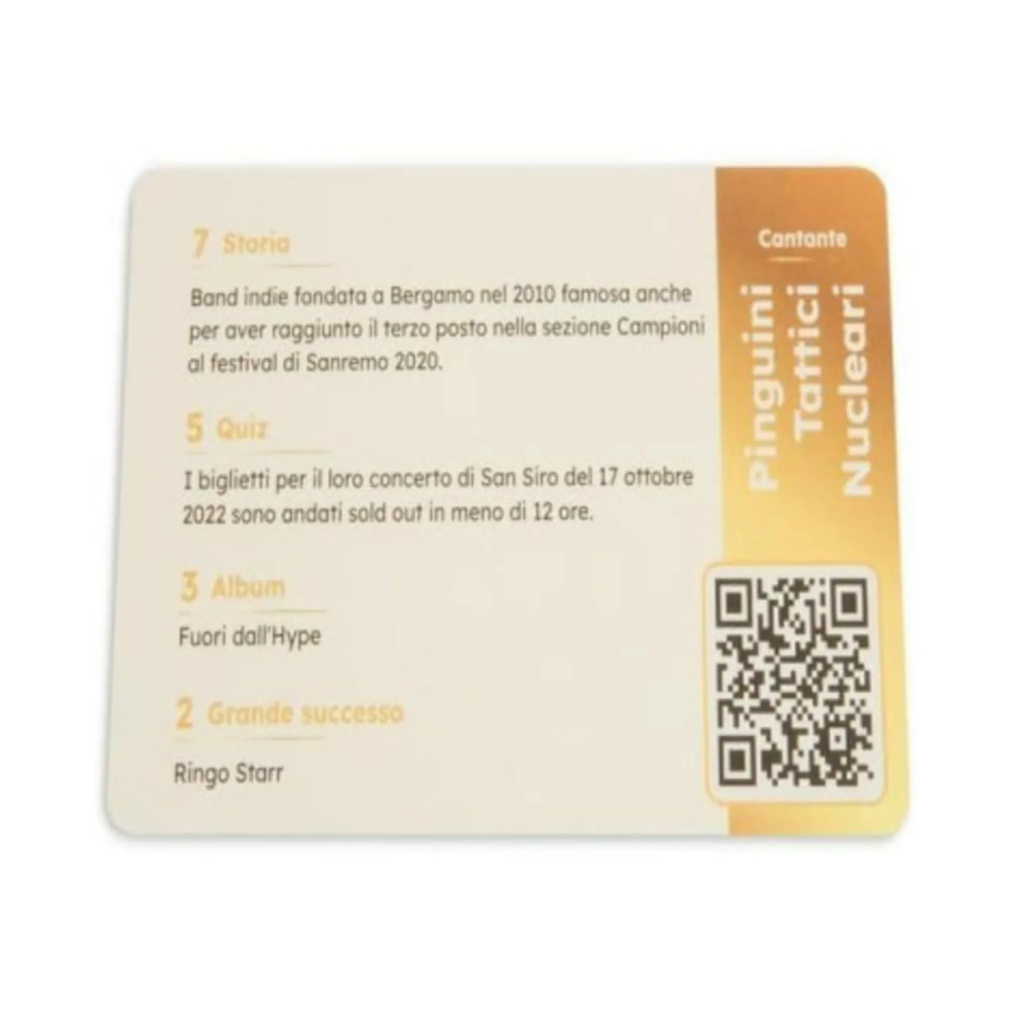 Più di 300 band e artisti internazionali e italiani da indovinare con 4 indizi: storico, quiz, album e grande successo.