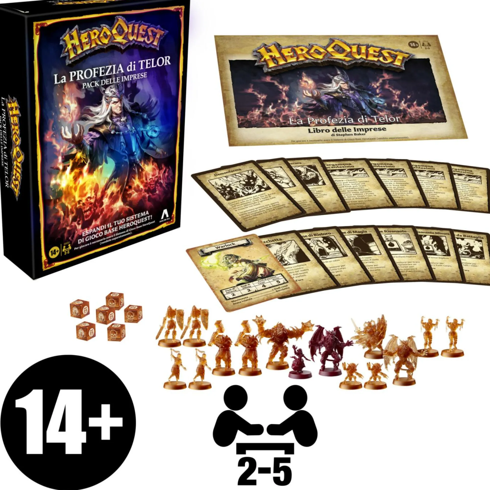 ENTUSIASMANTE ESPANSIONE: espandi il tuo Sistema di Gioco Base HeroQuest con il Pack delle Imprese La Profezia di Telor, un tempo disponibile solo come parte della confezione HeroQuest: Haslab Mythic Tier (richiede il Sistema di Gioco Base HeroQuest per poter giocare, venduto separatamente).