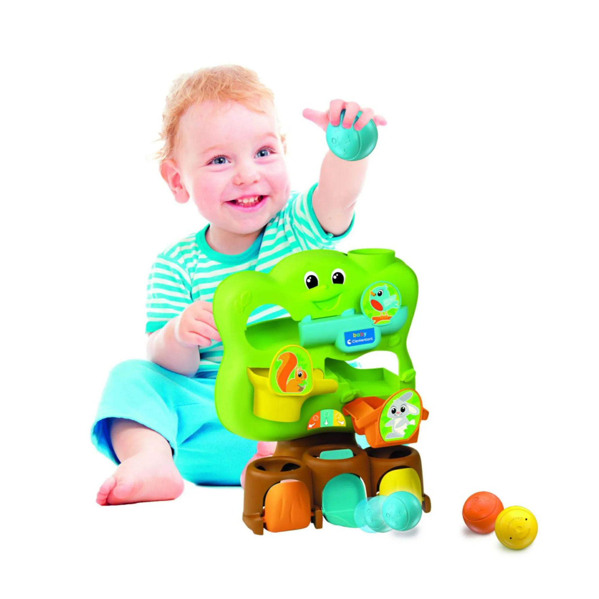 Un divertente albero con tanti scivoli, palline e porticine per aiutare i più piccoli a sviluppare il pensiero logico, la coordinazione manuale e il rapporto causa-effetto.