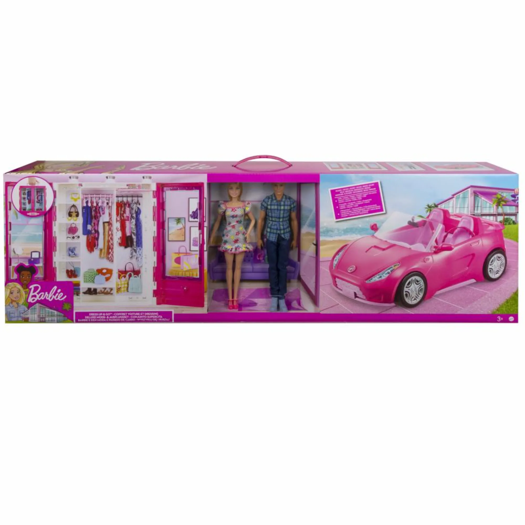 Questo divertente set di gioco contiene due bambole, un armadio rosa e una decappottabile rosa, perfette per muoversi in pochi minuti!