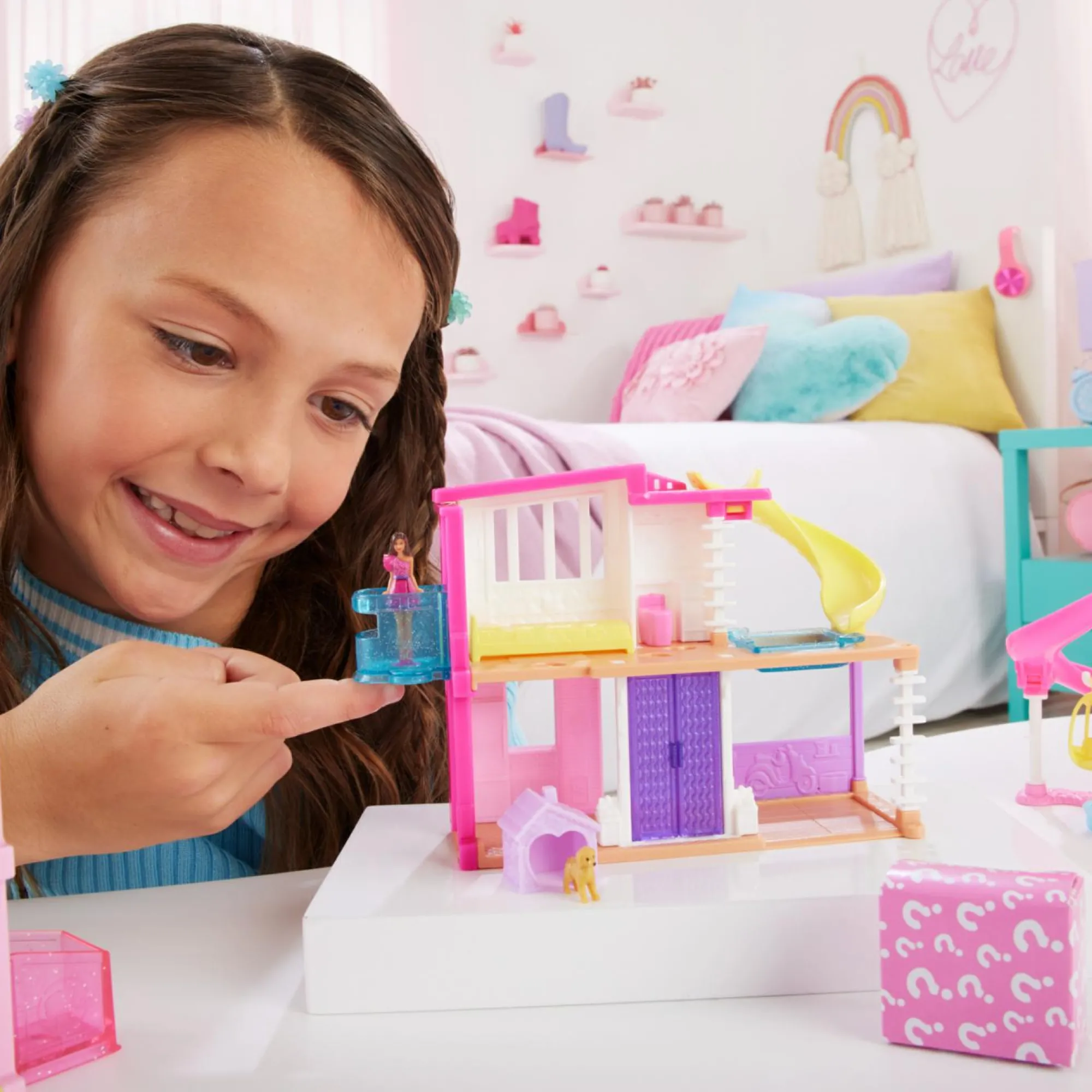 Ogni playset include una riproduzione su piccola scala di un’iconica Casa dei sogni di Barbie e una scatola piena di sorprese!