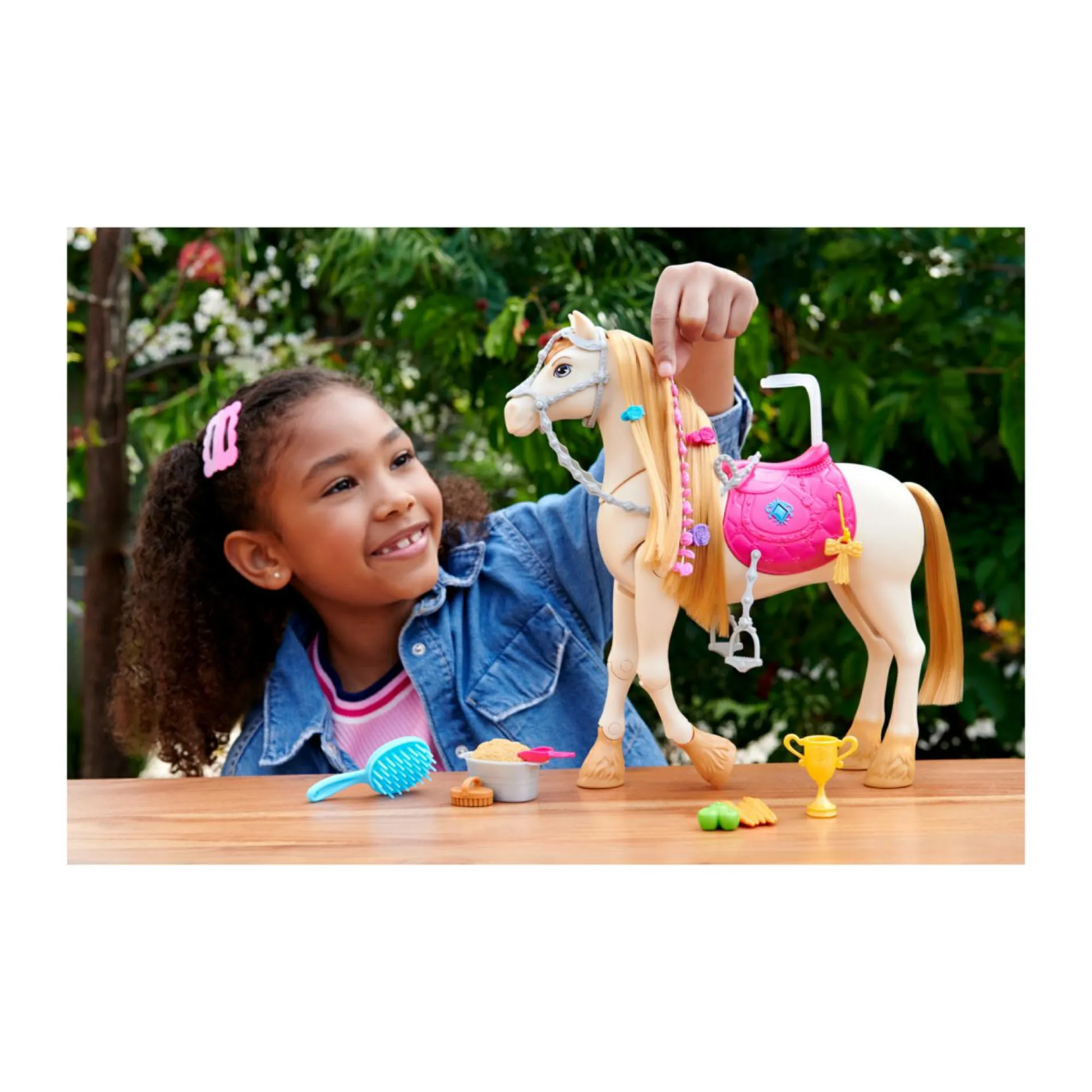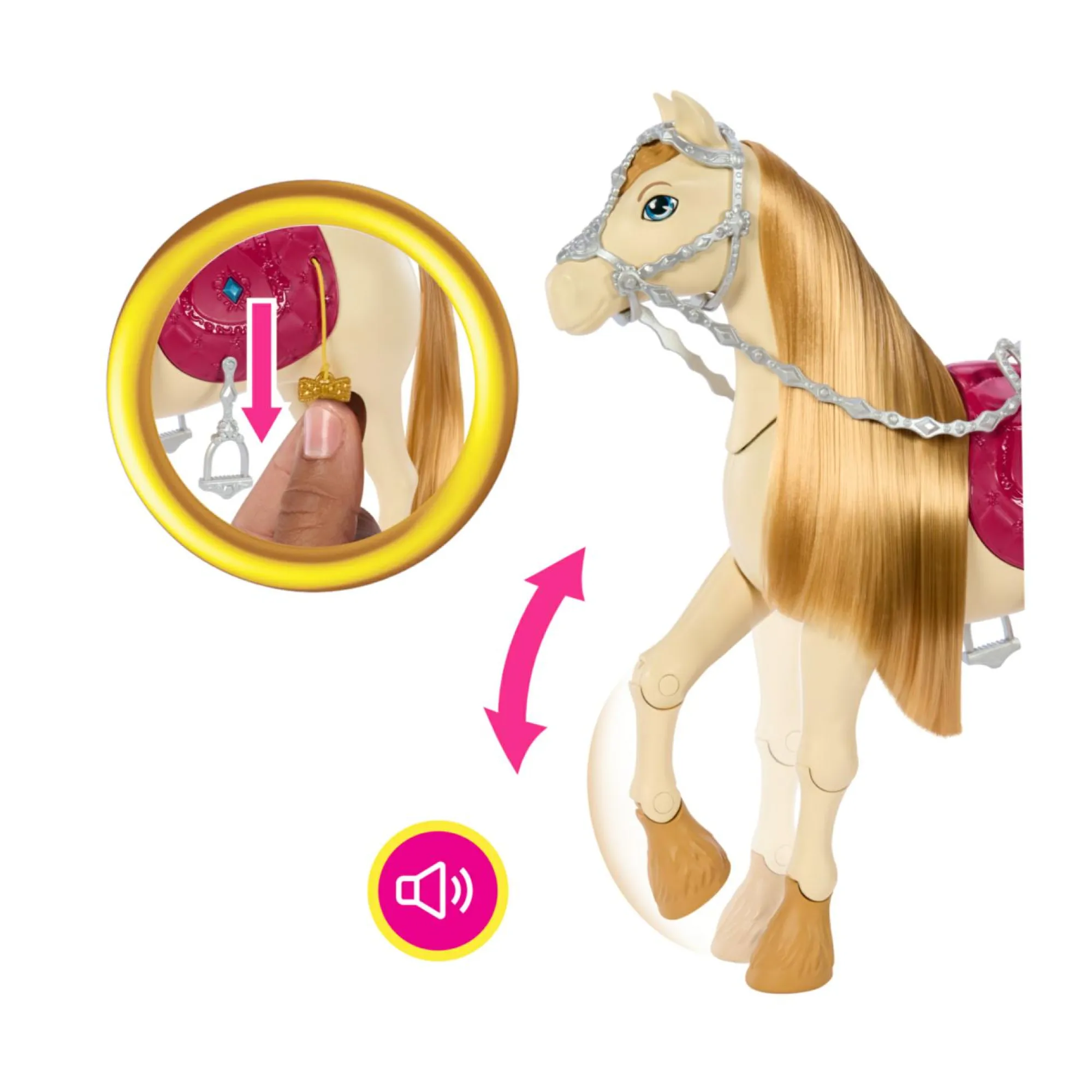 Ispirato alla serie Barbie Mysteries: The Great Horse Chase, questo cavallo giocattolo interattivo ha oltre 20 suoni e tante modalità di gioco!