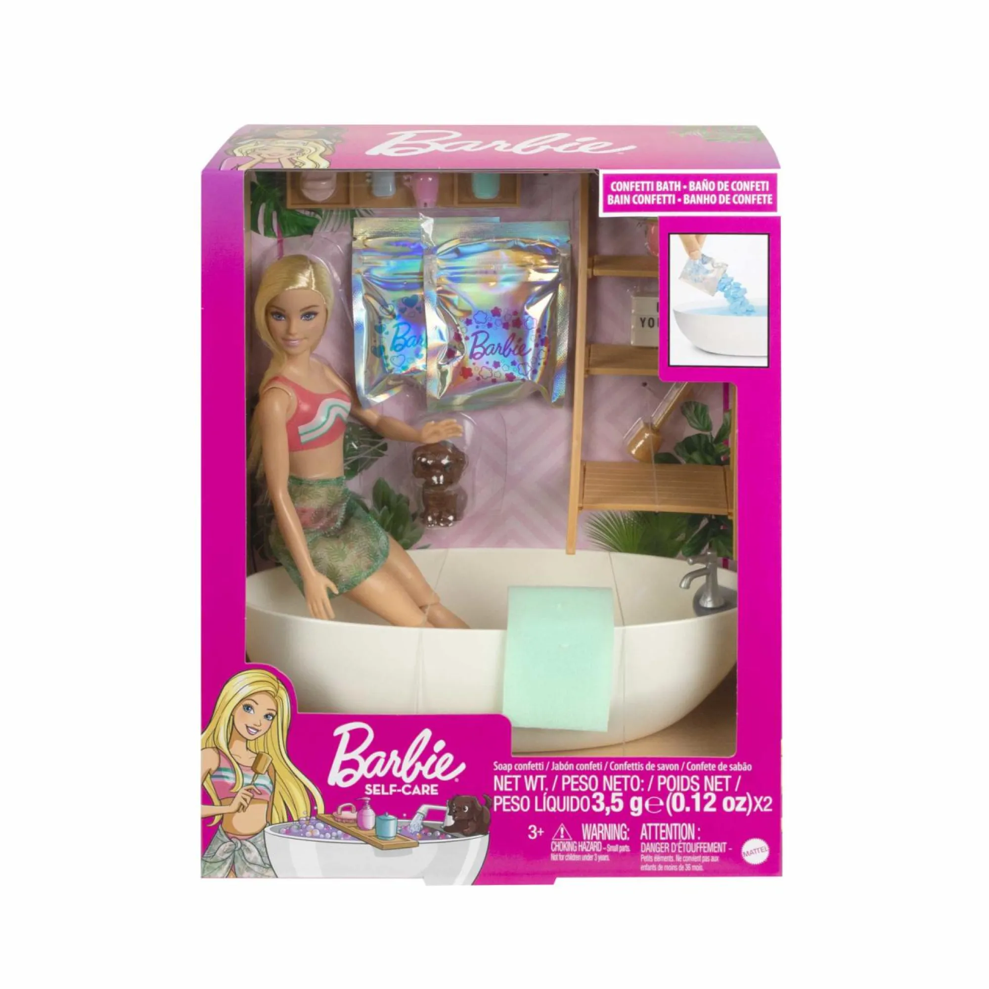 Cosa c’è di più rilassante di un bel bagno? Il Playset Vasca da Bagno Relax con bambola è il modo preferito di ricaricarsi, e il più colorato, per Barbie!