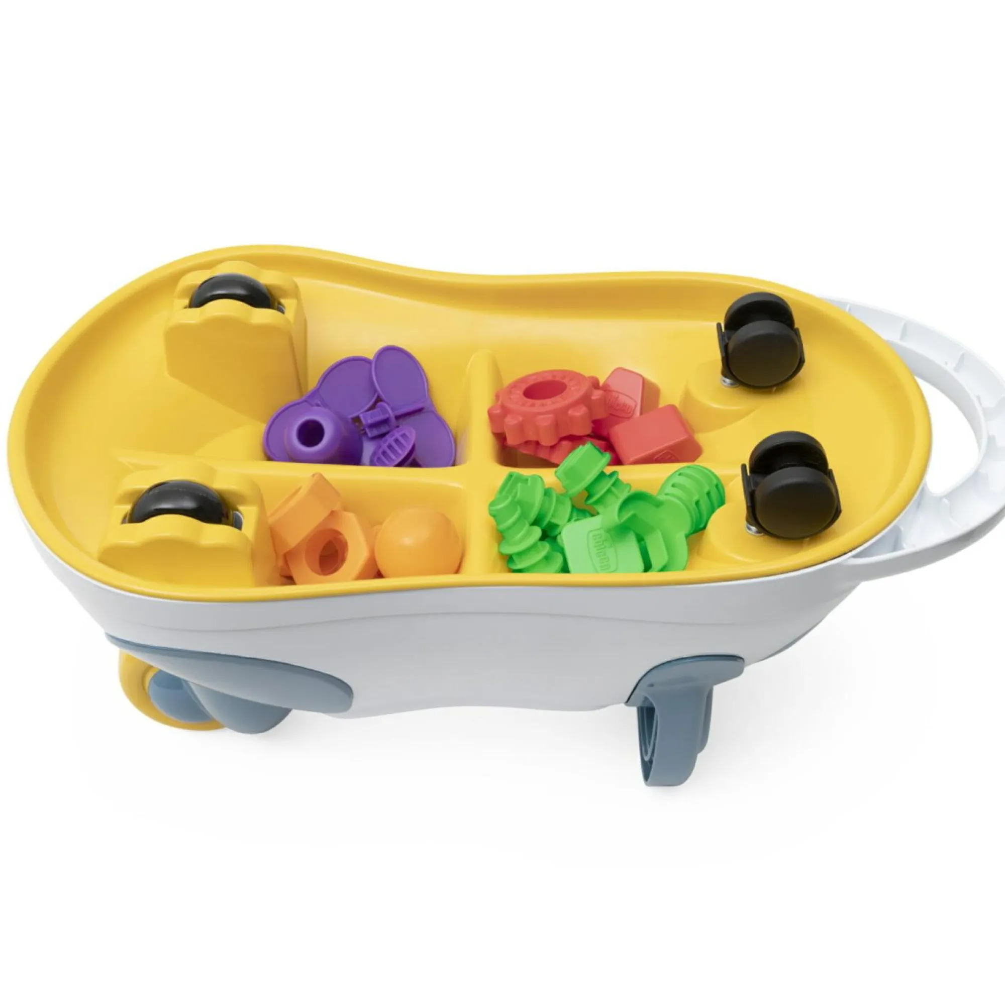 Carriola: dai 18 mesi il giocattolo può essere utilizzato come una vera carriola. Capovolgi il giocattolo e spingilo per trasportare qualsiasi oggetto in casa! Questa attività aiuterà i bambini a sviluppare la creatività e il movimento libero.