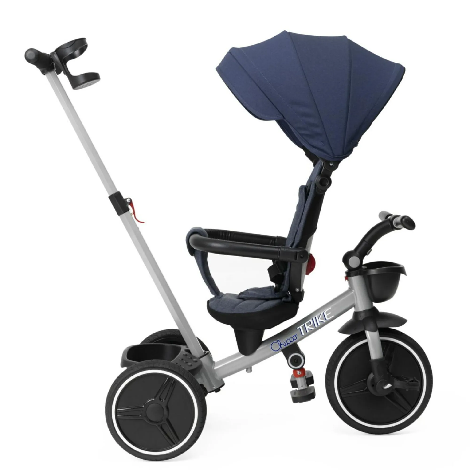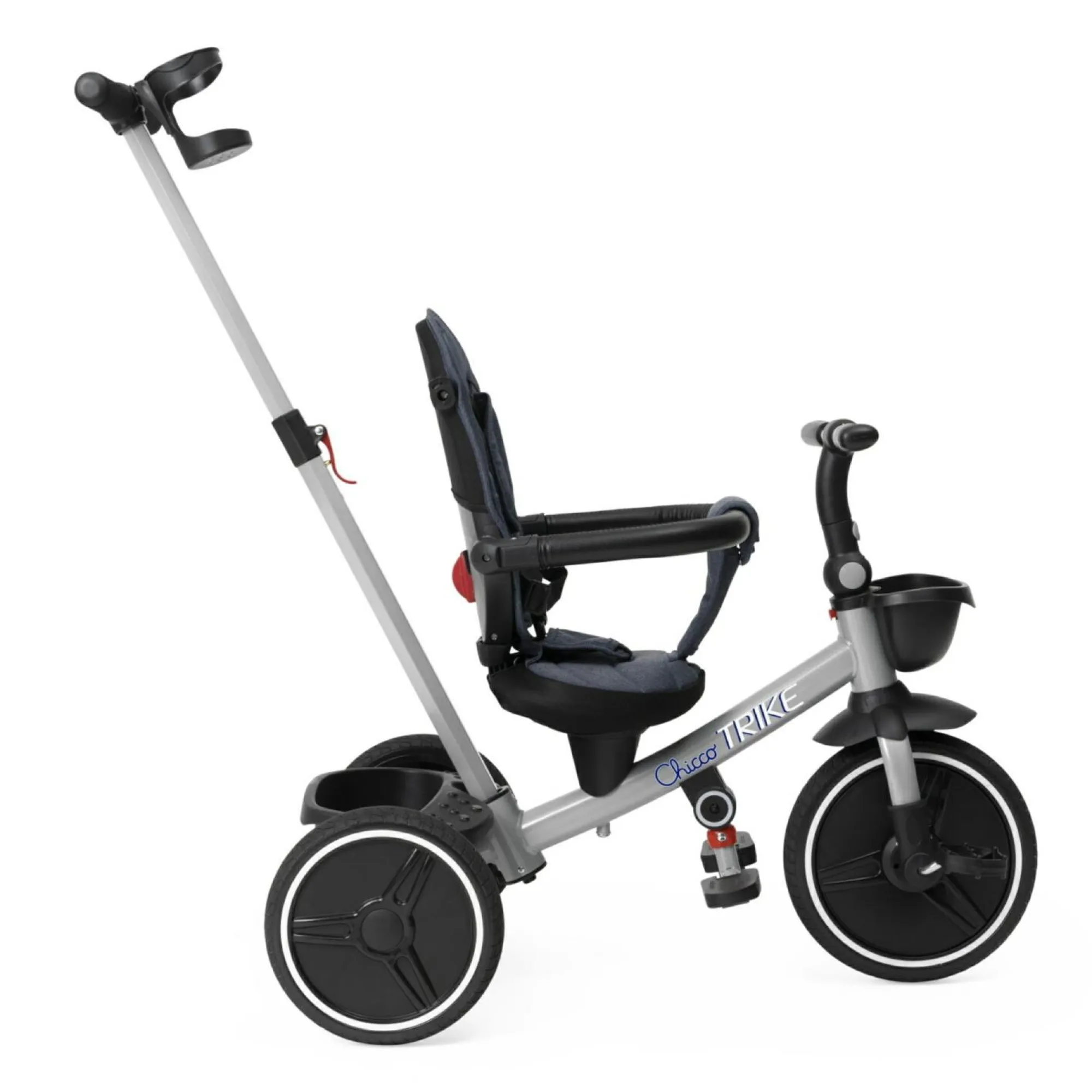 Maniglione telescopico rimovibile regolabile in altezza in 2 diverse posizioni, che permette ai genitori di guidare il triciclo.