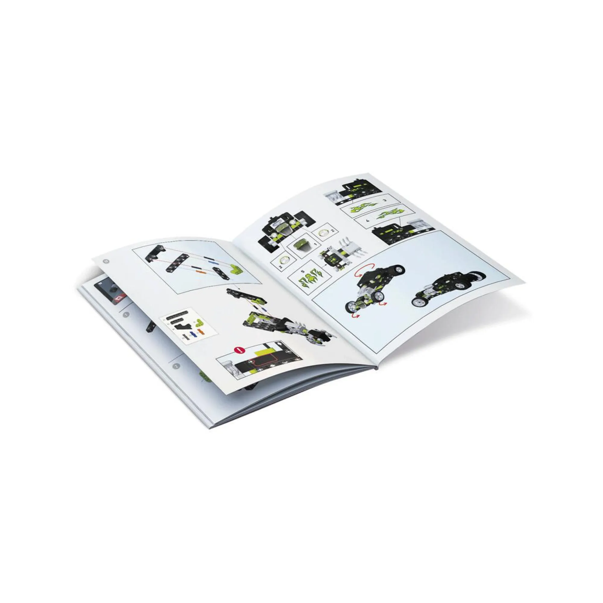 Il kit contiene oltre 120 pezzi per costruire 2 diversi modelli dotati di meccanismi a trasmissione