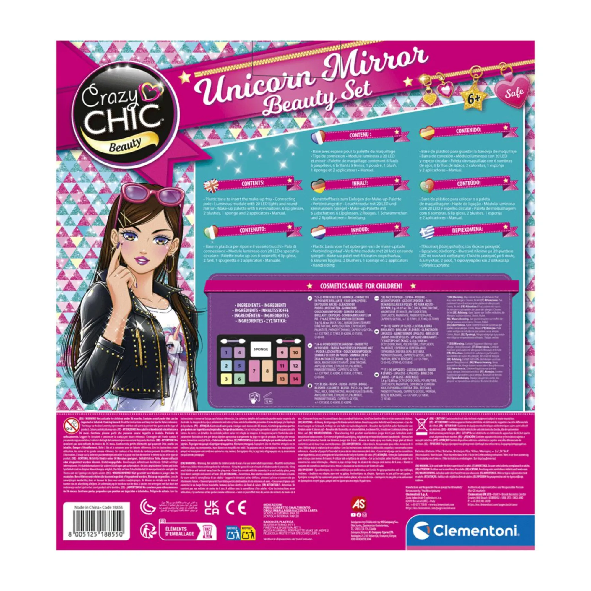 Uno specchio trendy e luminoso con la base composta da una palette di trucchi e cave per riporre smalti e vari accessori.