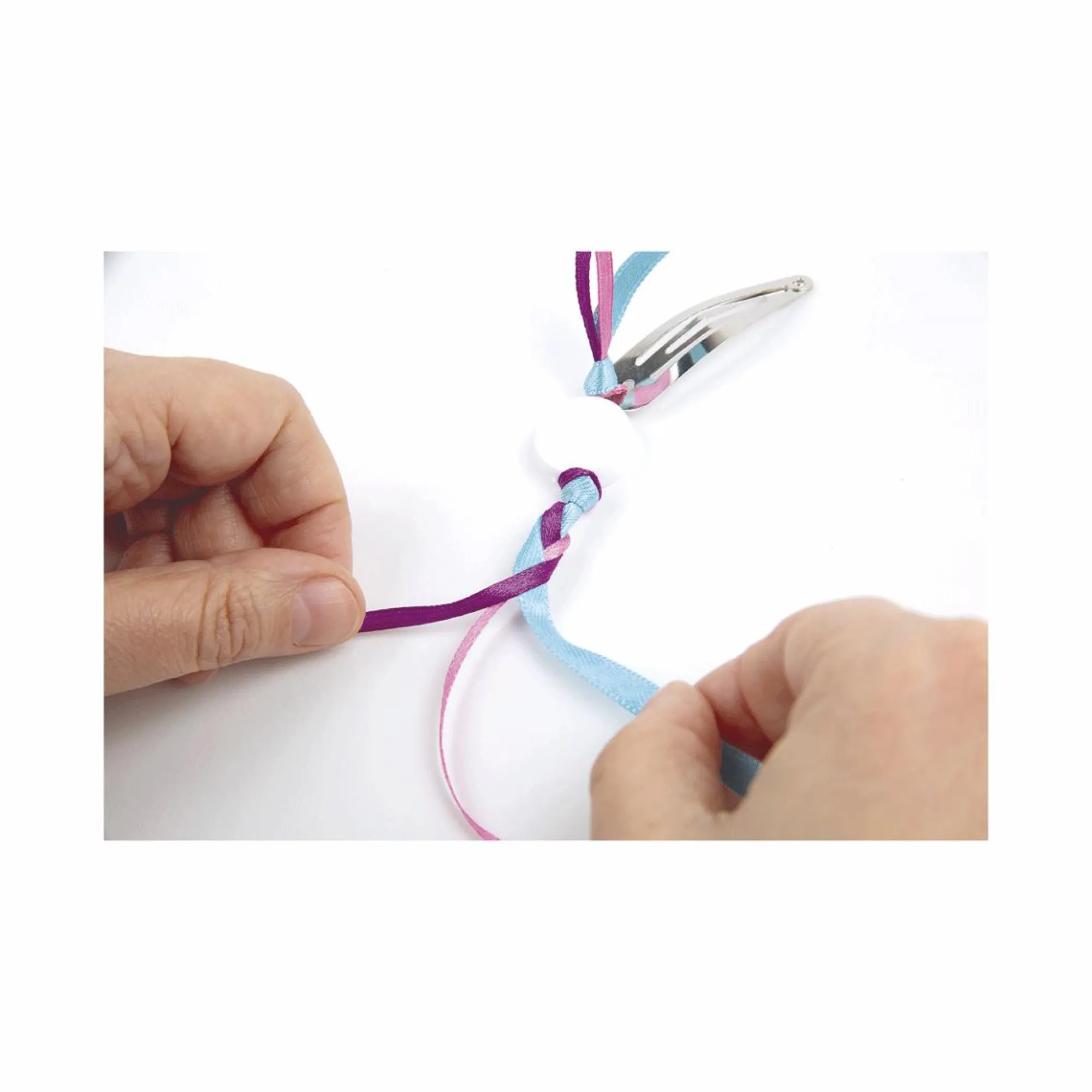 Diversi componenti per assemblare e personalizzare accessori per capelli.