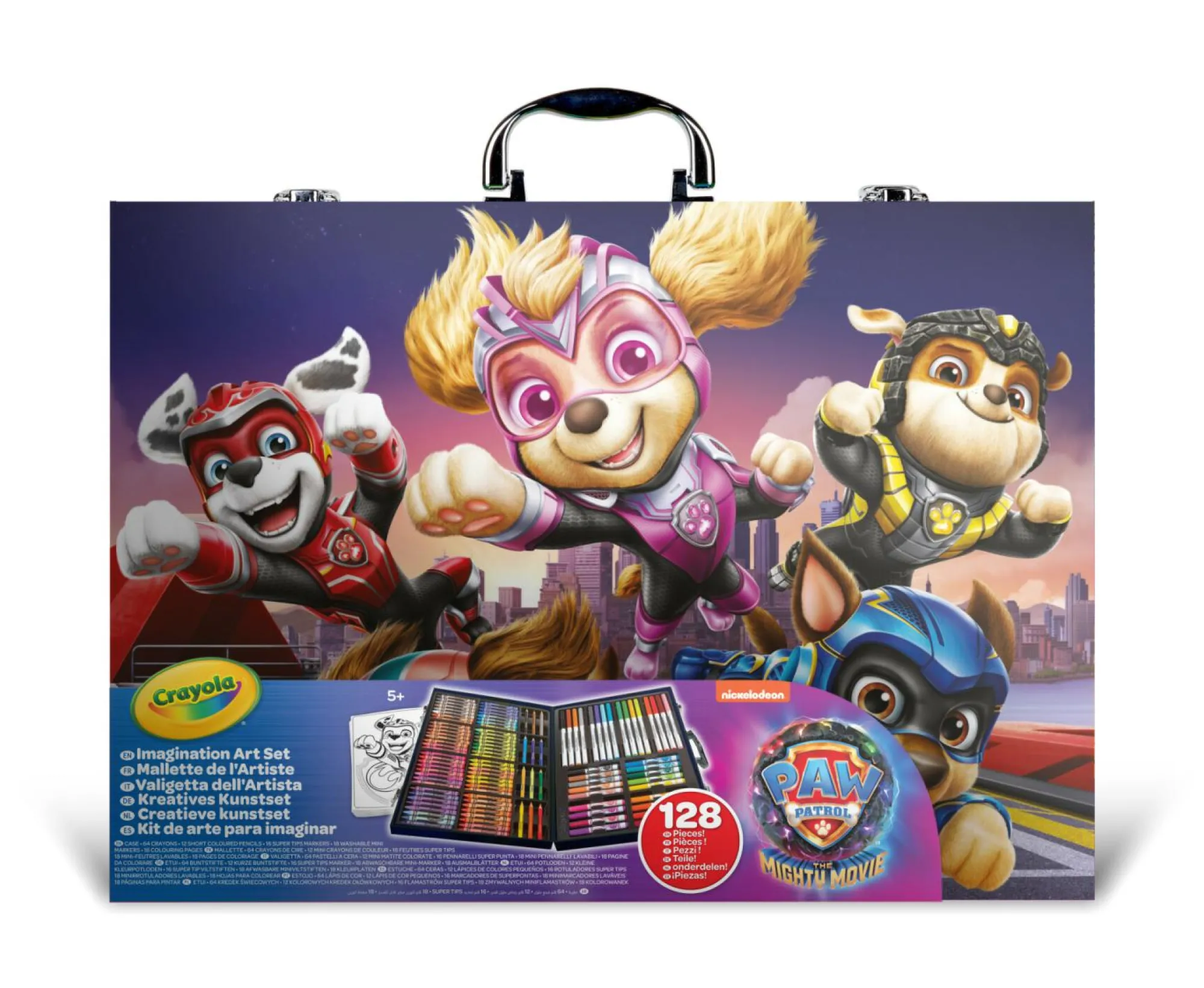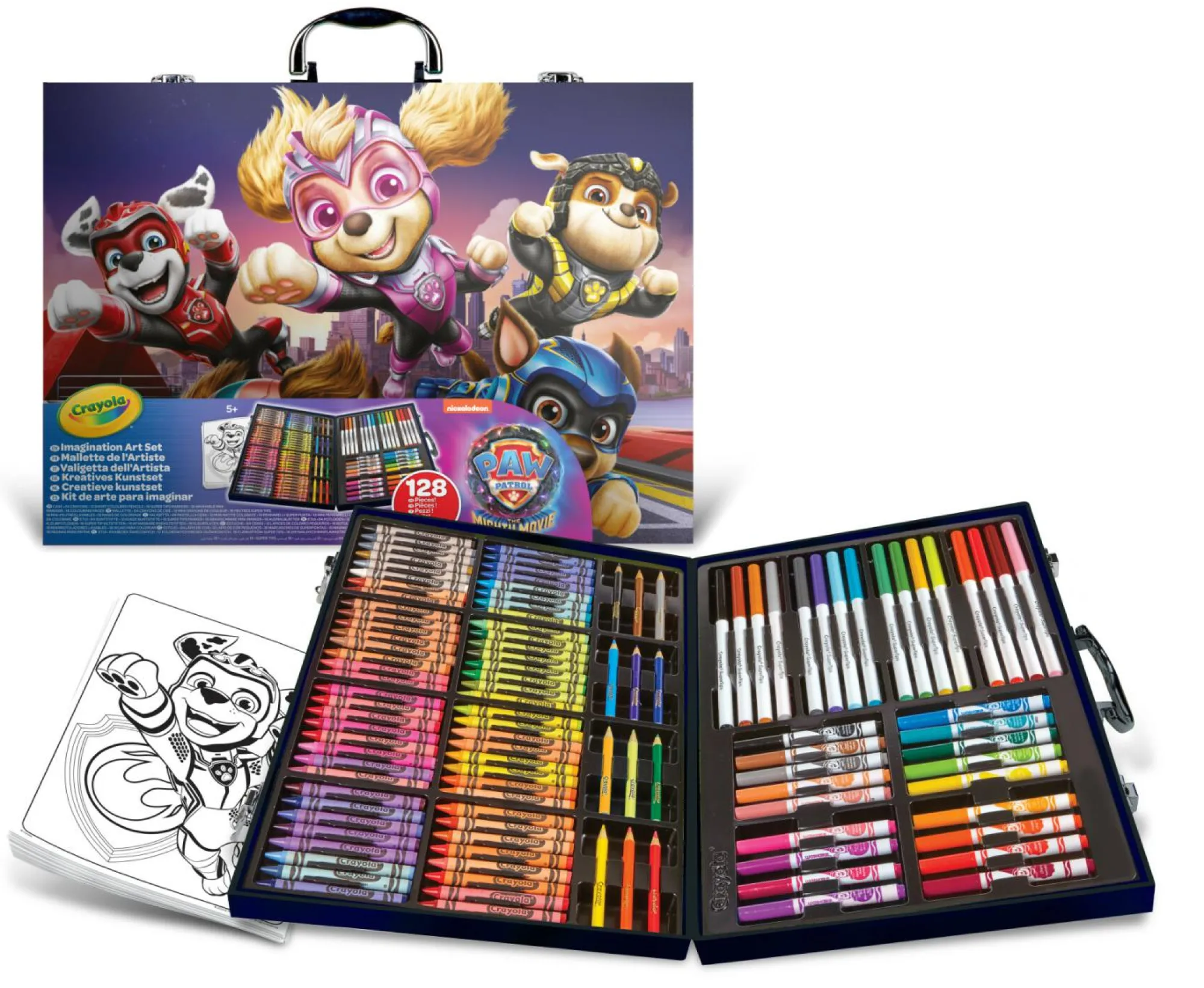 Contenuto: 10 matite colorate, 13 pennarelli supertips lavabili, 2 matite per bozzetti, 1 pennarello nero punta fine, Temperino & gomma Guida passo-a-passo per imparare a disegnare (32 pagine), 10 fogli per disegnare, 5 fogli con elementi da ricalco