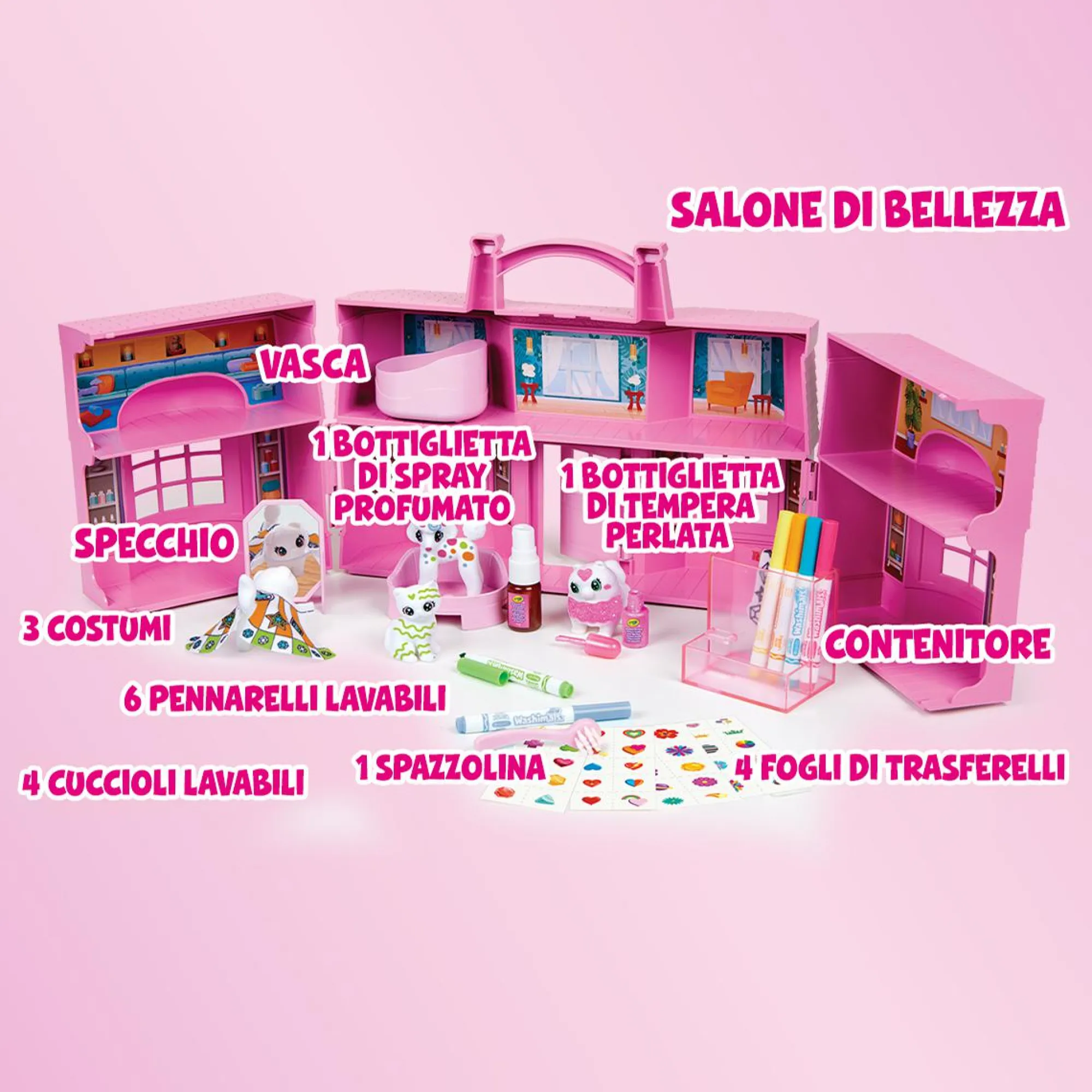 Un set ricchissimo che contiene tanti accessori per colorare, decorare e personalizzare i propri cuccioli Washimals! 5 modi per giocare: colora, profuma, vesti, fai splendere e aggiungi gli adesivi!
