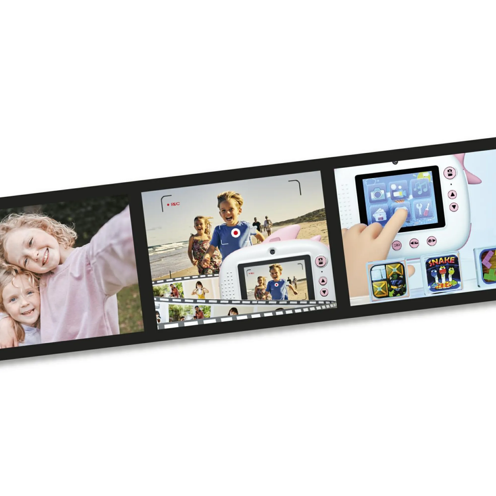 Supporta una scheda MicroSD da max 32 GB NON inclusa nella confezione.Senza la presenza della scheda sarà comunque possibile scattare e stampare istantaneamente le proprie foto ma non sarà possibile archiviare foto e video in memoria.