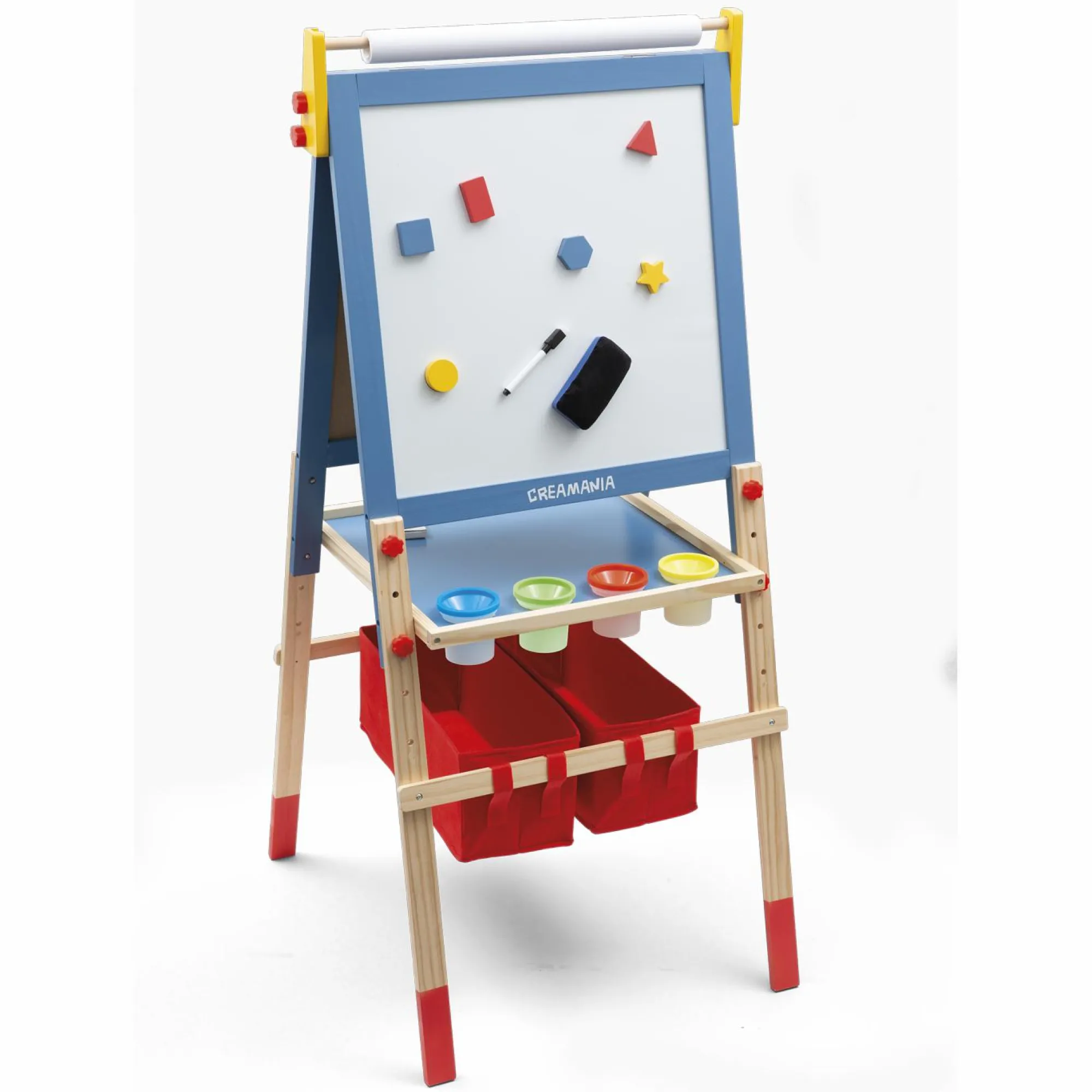 SUPER ACCESSORIATA PER SODDISFARE TUTTE LE ESIGENZE CREATIVE: Con 6 magneti, 1 pennarello, 1 cancellino, 5 gessetti colorati, 4 barattoli da pittura, 2 contenitori in tessuto, 1 rotolo di carta, e un EXTRA rotolo per continuare a dipingere e a disegnare, questa lavagna offre tutto il necessario per stimolare la creatività del tuo bambino, e lasciare spazio alla sua fantasia e immaginazione. Inoltre, grazie al grande vassoio e ai contenitori per i materiali, la lavagna è sempre ordinata e pronta all’uso.