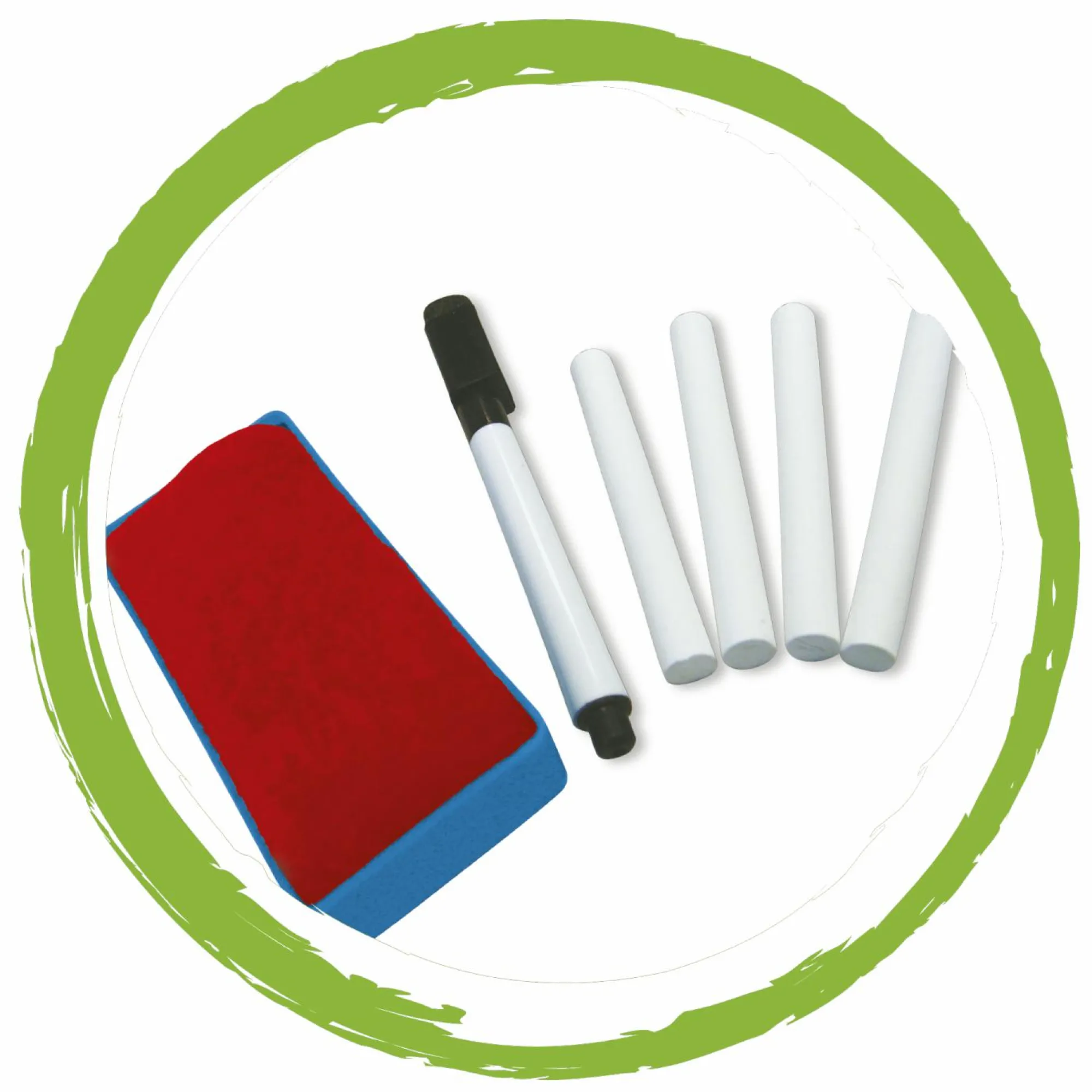 Include 4 gessetti, 1 pennarello e 1 cancellino
