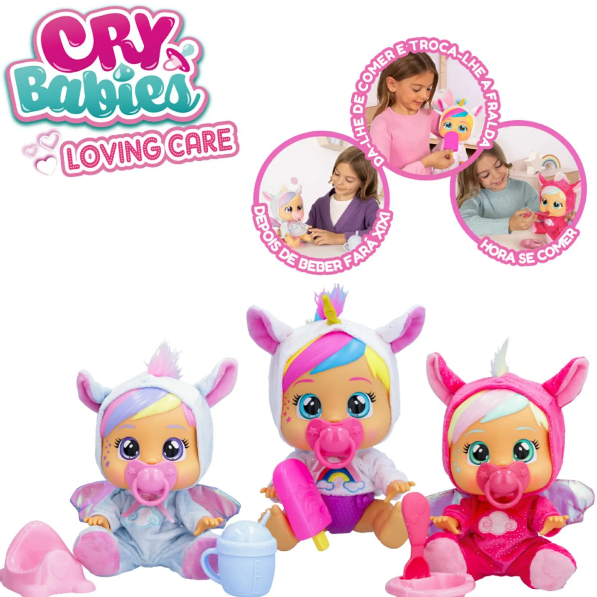 Cry Babies Loving Care Dreamy, Jenna e Hannah con pigiamini da unicorno e 3 accessori ciascuna.