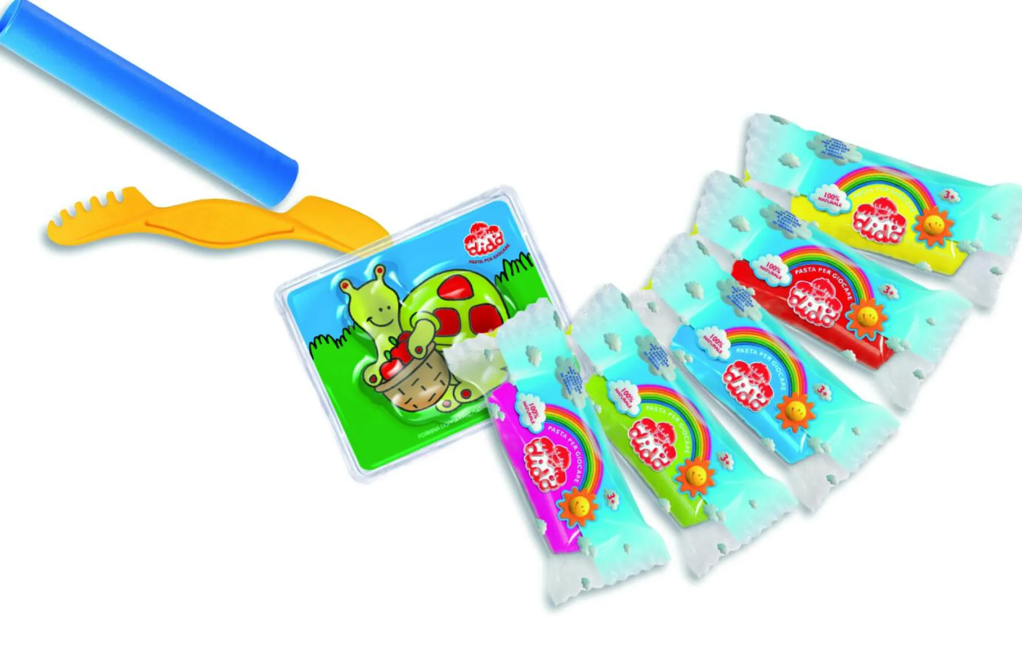 Contenuto: 5 salsicciotti, 1 formina doppia, 1 mattarello e 1 coltellino