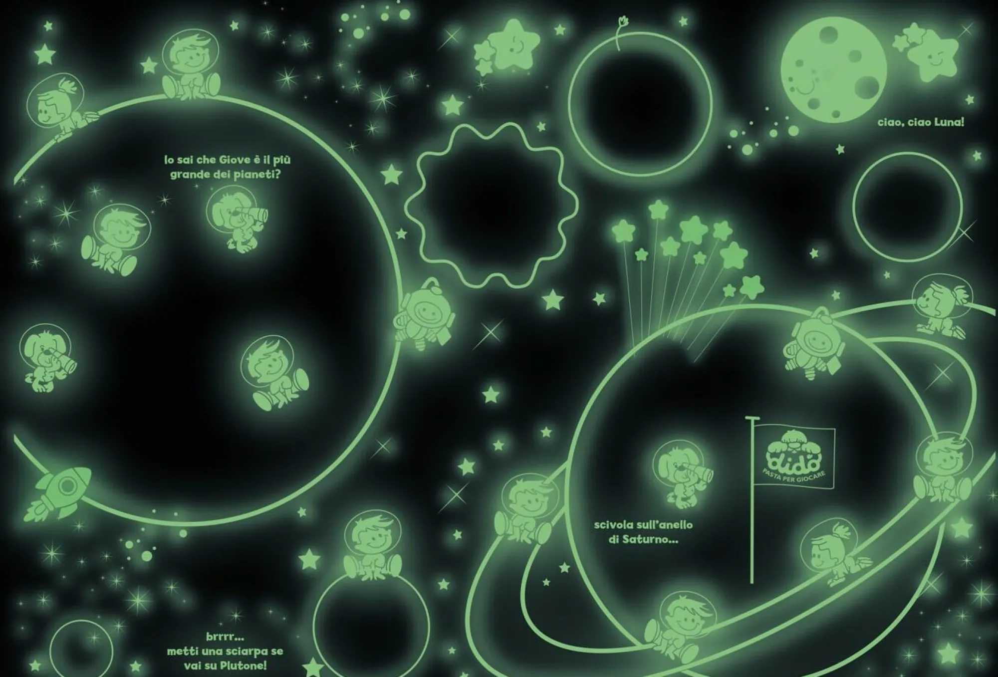 Con 500g di pasta per giocare Didò, le formine alta definizione, gli accessori e il maxi puzzle spaziale che si illumina al buio