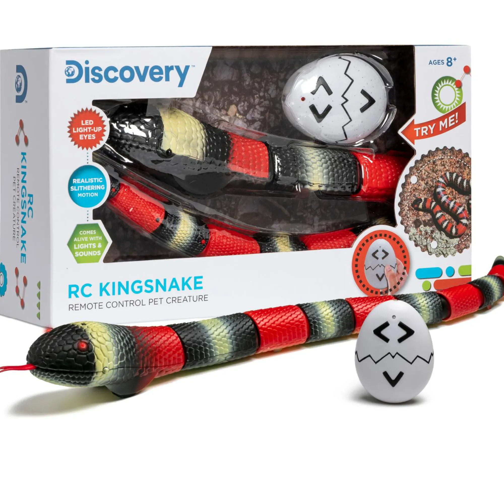 Usa il telecomando a forma di uovo per controllare il suono sibilante emesso dal serpente.