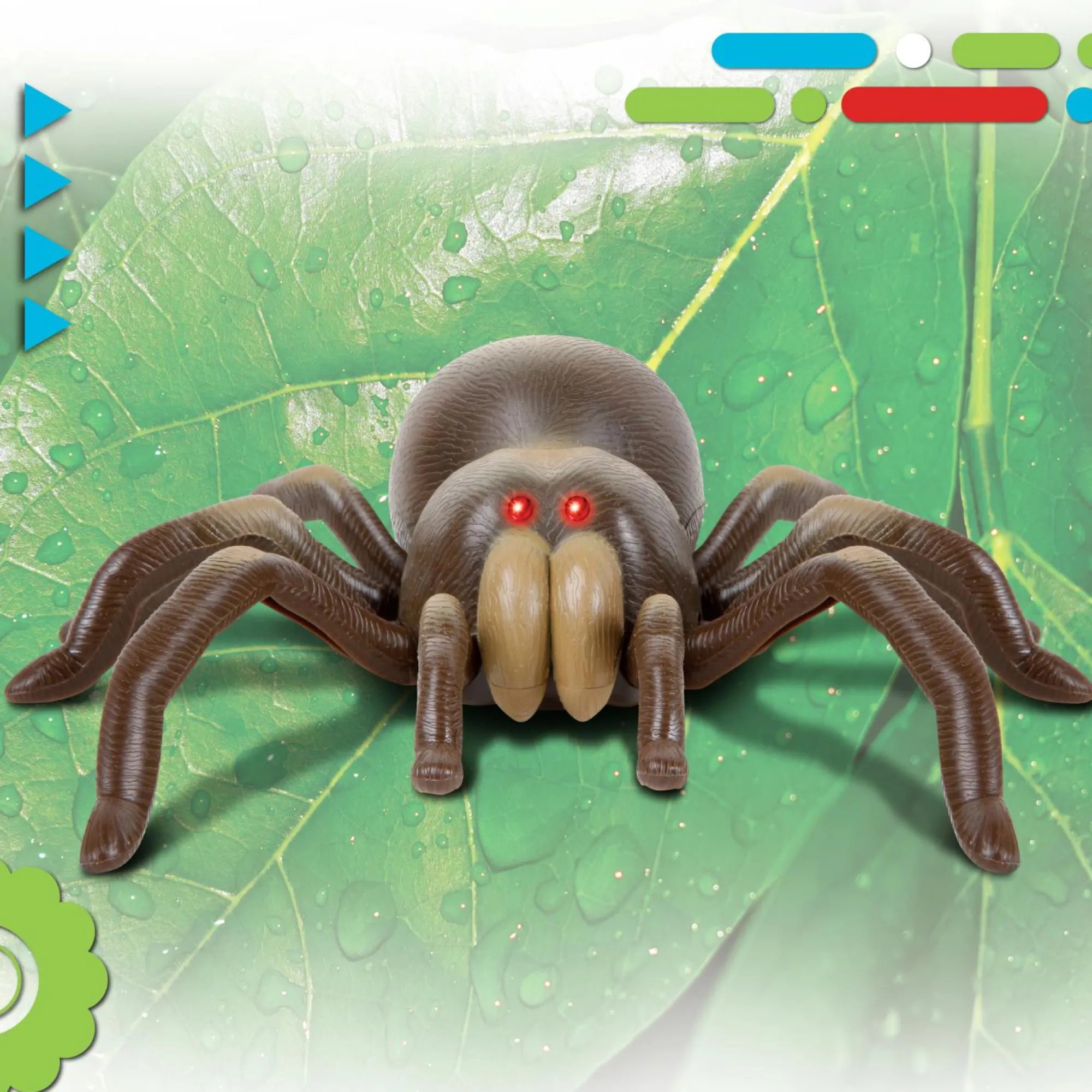 Occhi che si illuminano al buio: Sapevi che le tarantule cacciano per la loro preda di notte? La tarantola mostra i suoi occhi che brillano di rosso al buio quando lo accendi!