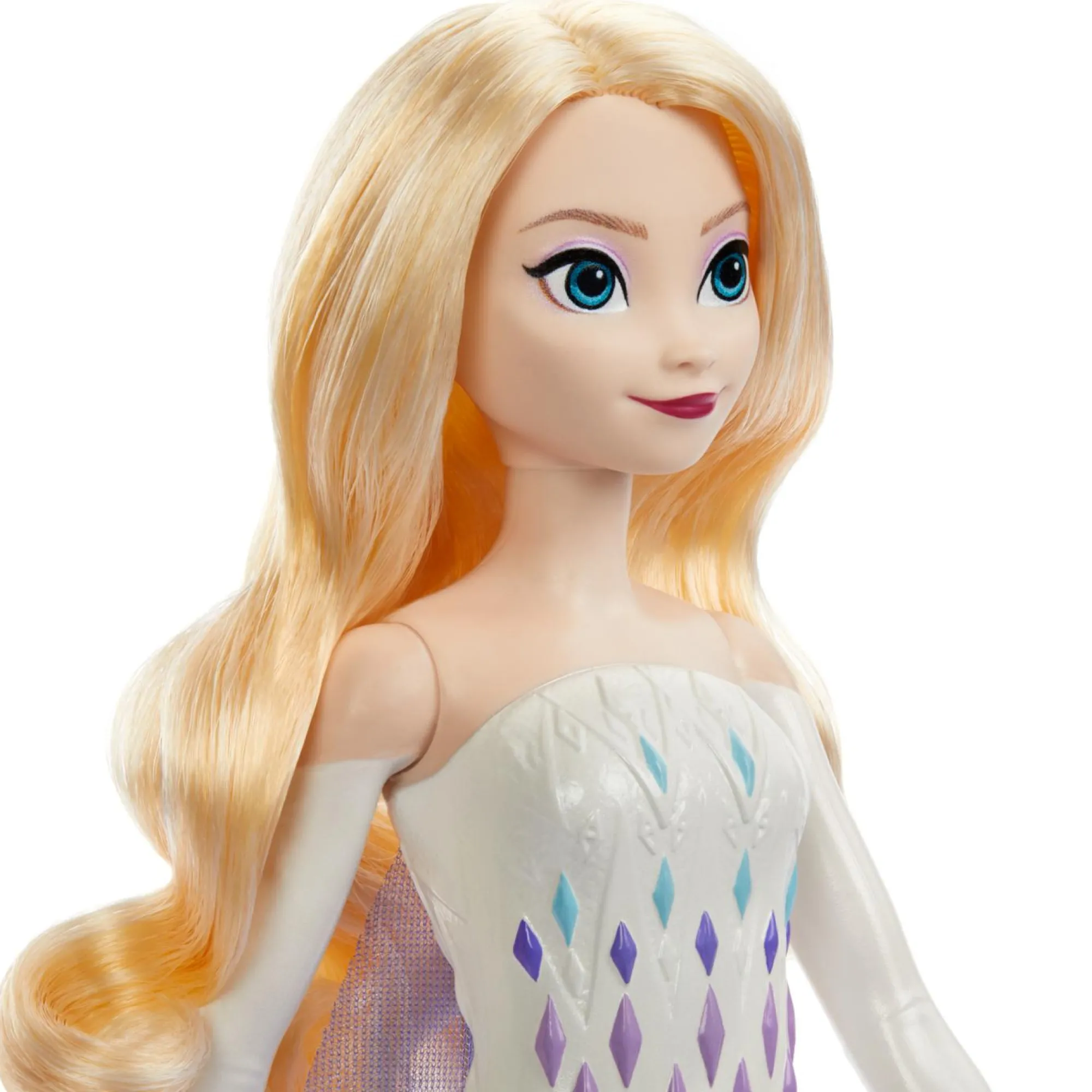 La bambola Elsa alla moda è snodabile e sfoggia un outfit ispirato alla regina delle nevi con gonna morbida rimovibile e mantello.