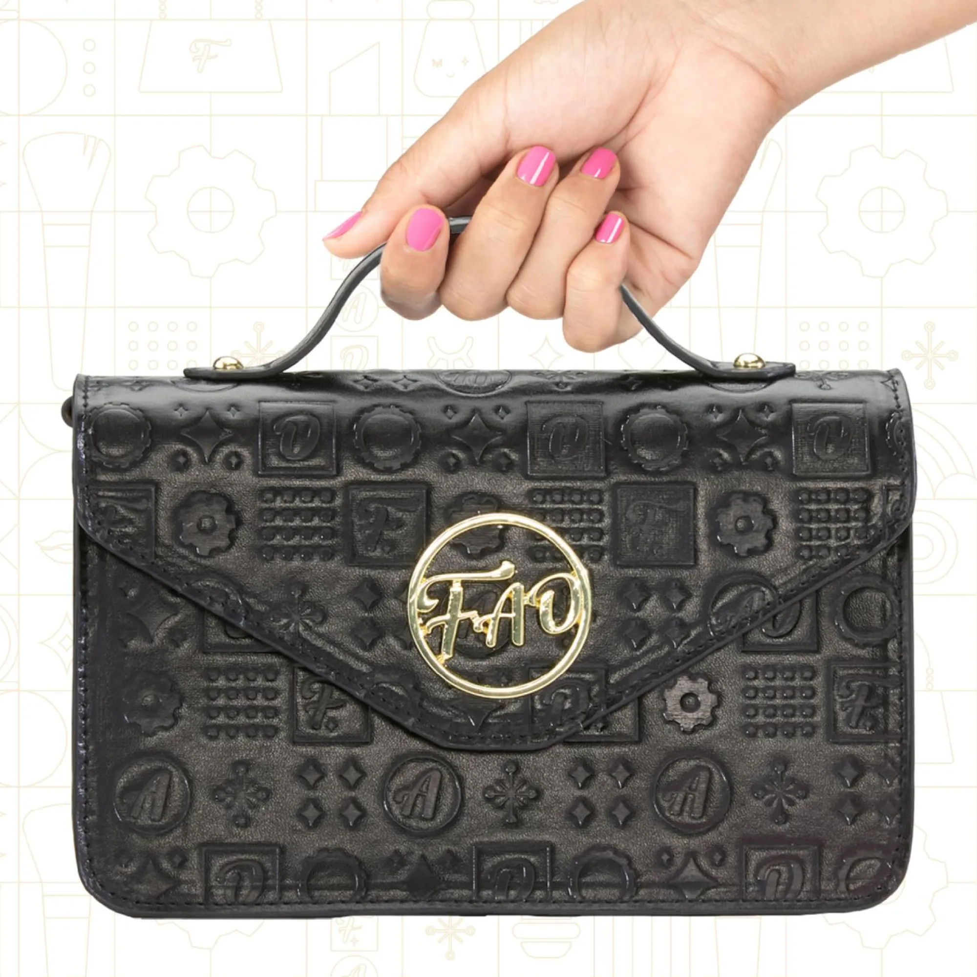 Borsa a tracolla con stampa all-over in rilievo e dorato.