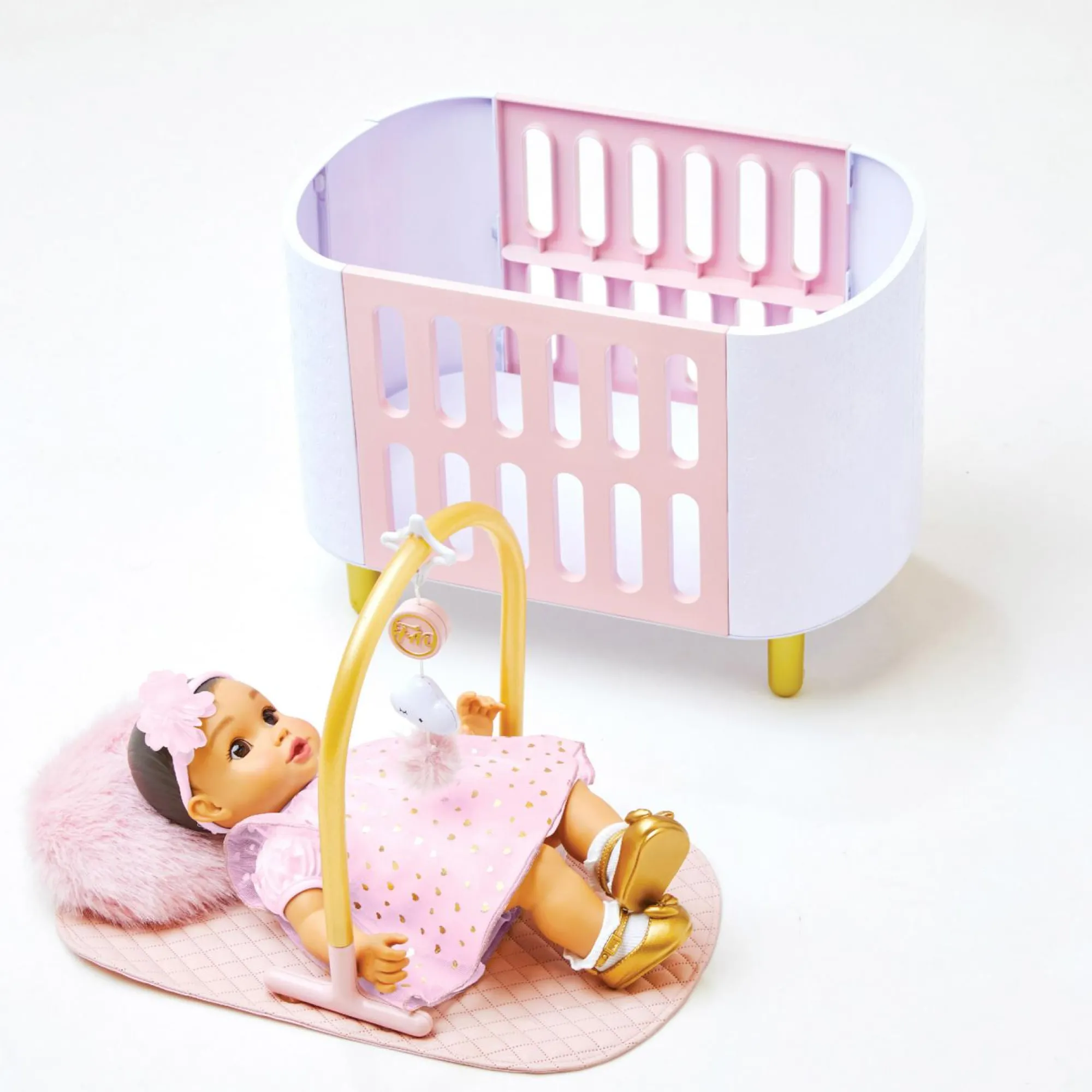 Montaggio semplice per culla da 40 cm e tappetino da gioco.
