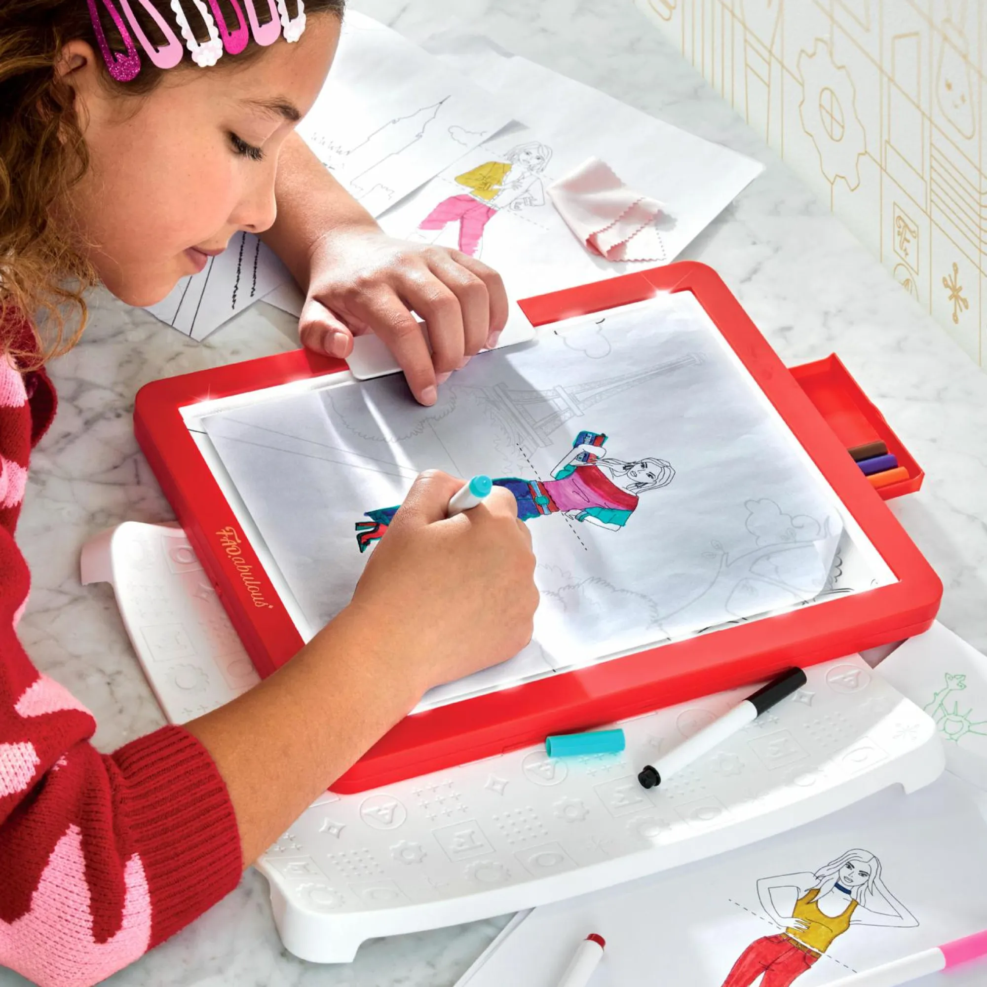 Il tablet offre una superficie luminosa per il ricalco e tiene il foglio in posizione.