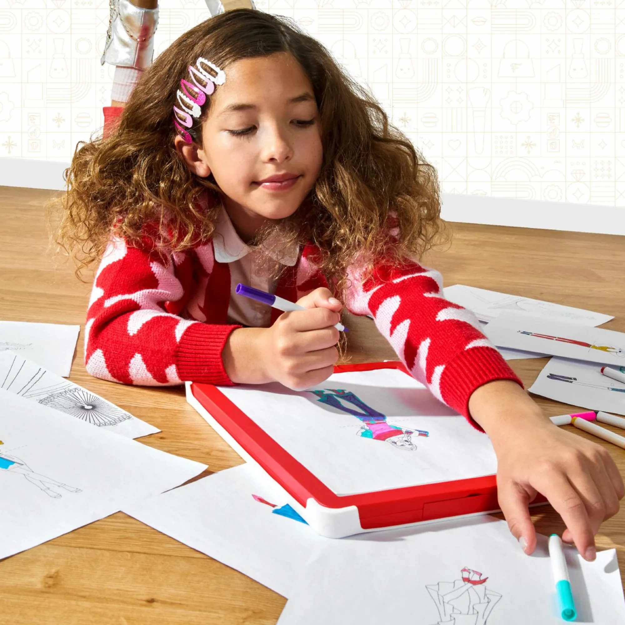 Il set include 8 pennarelli, 10 modelli di moda, 1 panno per la cancellazione e 10 fogli di carta da ricalco