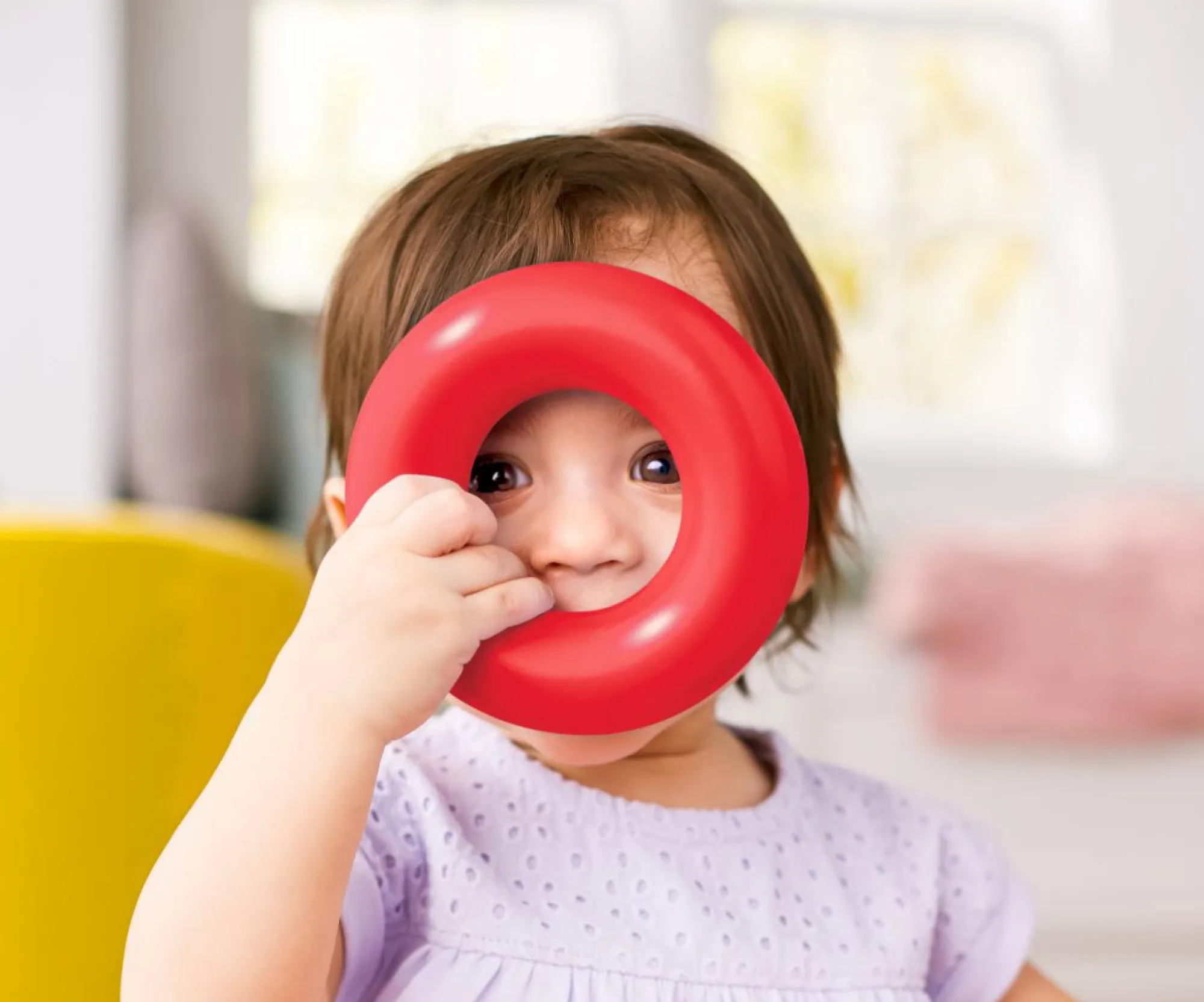 Aiuta a introdurre il concetto di dimensione relativa, nel momento in cui il bambino impila gli anelli dal più grande al più piccolo