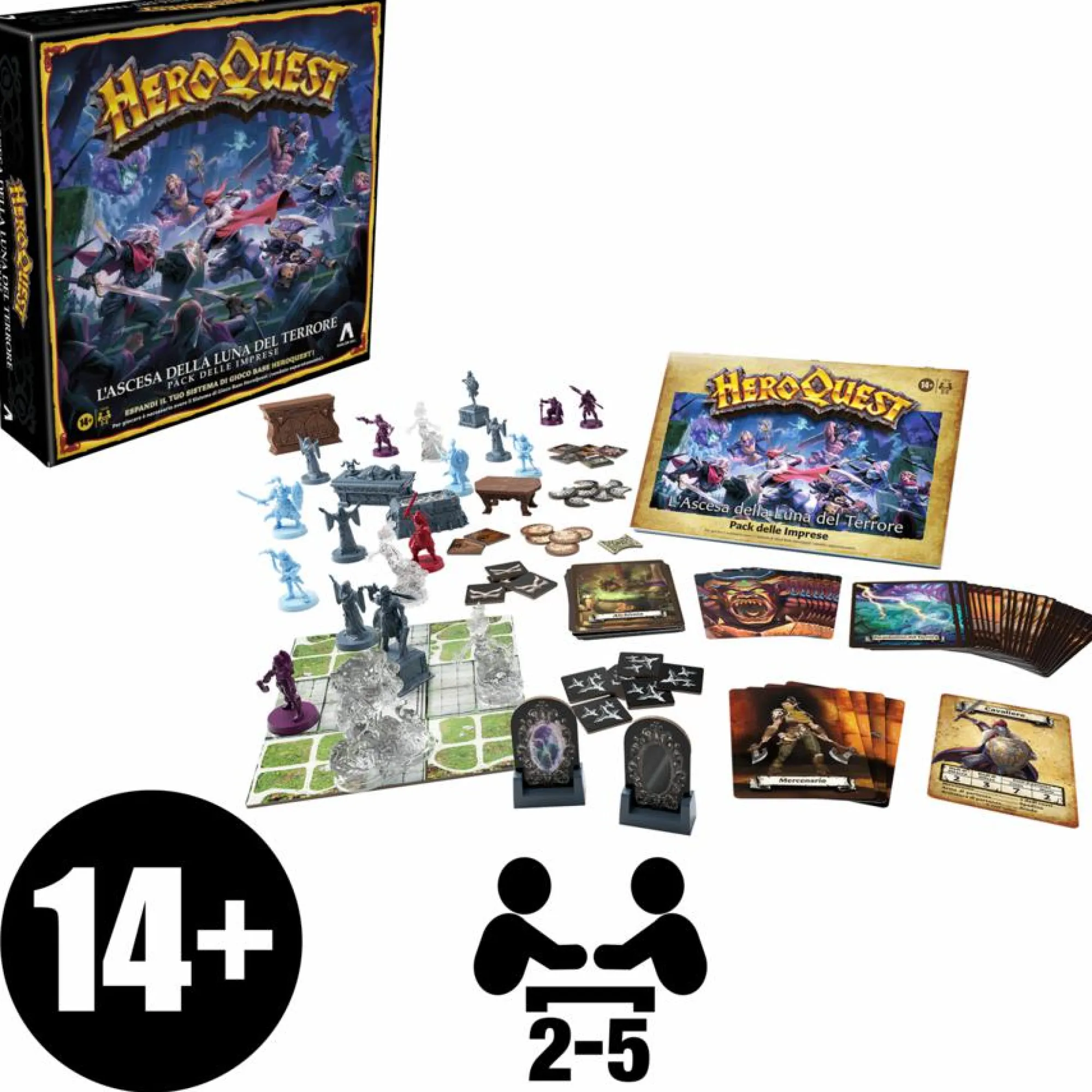 ESPANDI IL TUO SISTEMA DI GIOCO BASE HEROQUEST: il Pack delle Imprese L’ascesa della Luna del Terrore conclude l’emozionante storia iniziata con La Maga dello Specchio (è necessario avere il Sistema di Gioco Base HeroQuest, venduto separatamente)