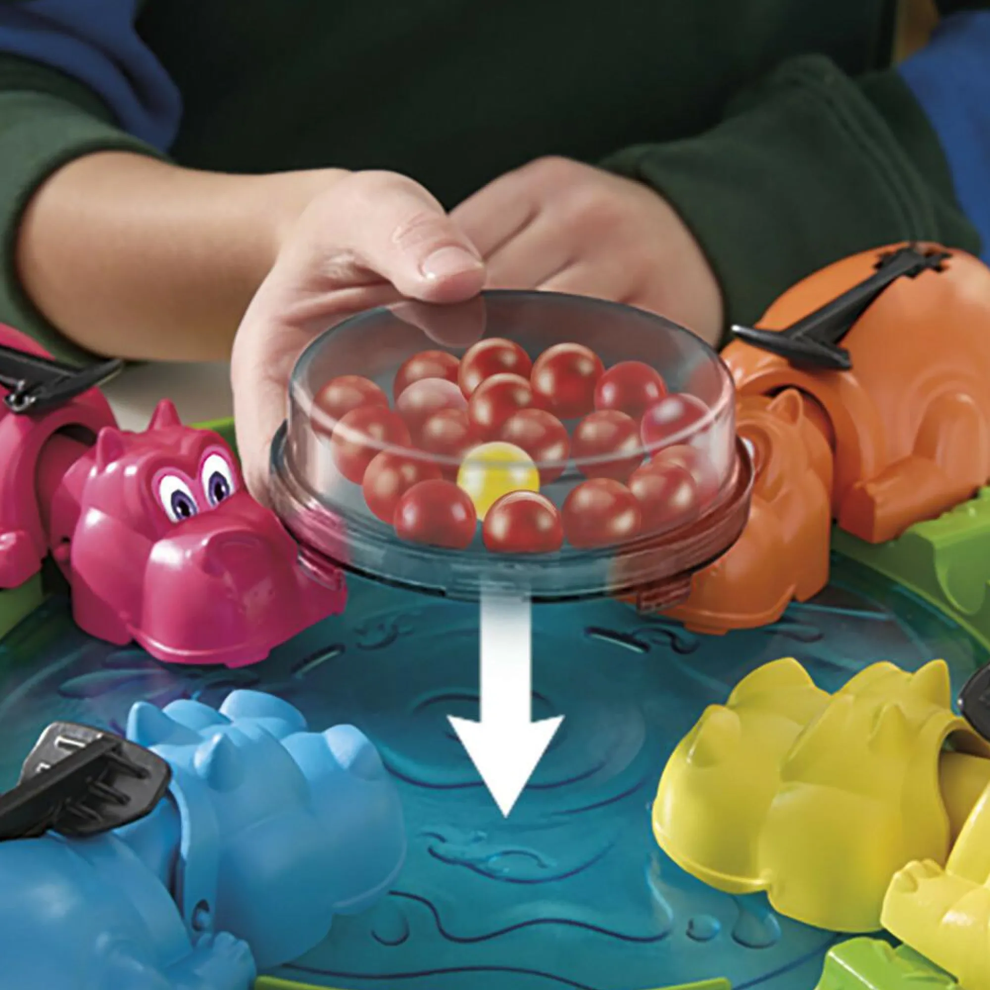 LE BIGLIE SI RICARICANO SUBITO: per un’azione senza sosta, le biglie ingoiate si ricaricano istantaneamente nella mangiatoia dell’ippopotamo, pronte per essere lanciate nella prossima partita! Il gioco non finisce mai.