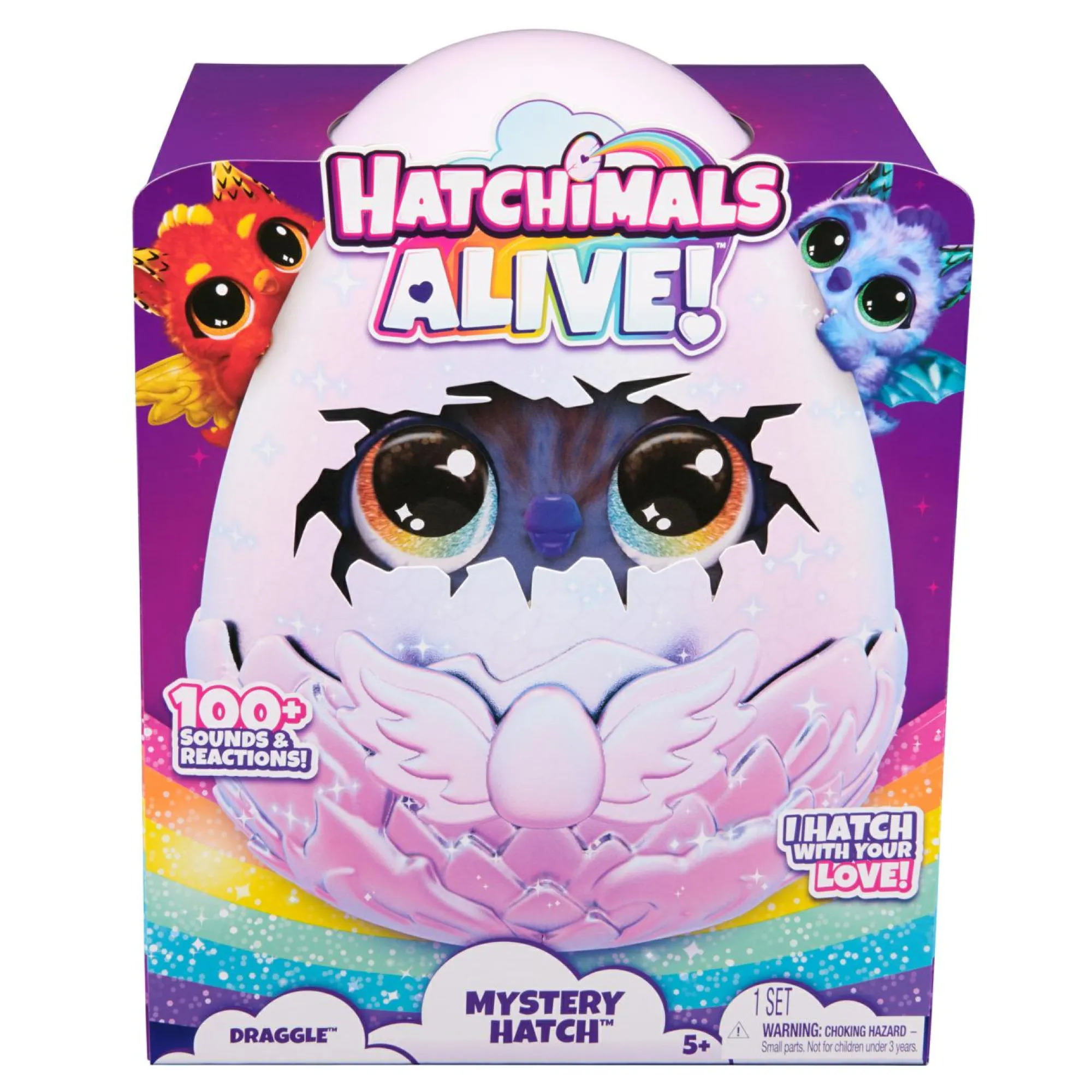 Le uova a sorpresa Hatchimals Alive Mystery Hatch si schiudono con il tuo amore, con oltre 100 suoni e reazioni. Scopri chi si nasconde all’interno!