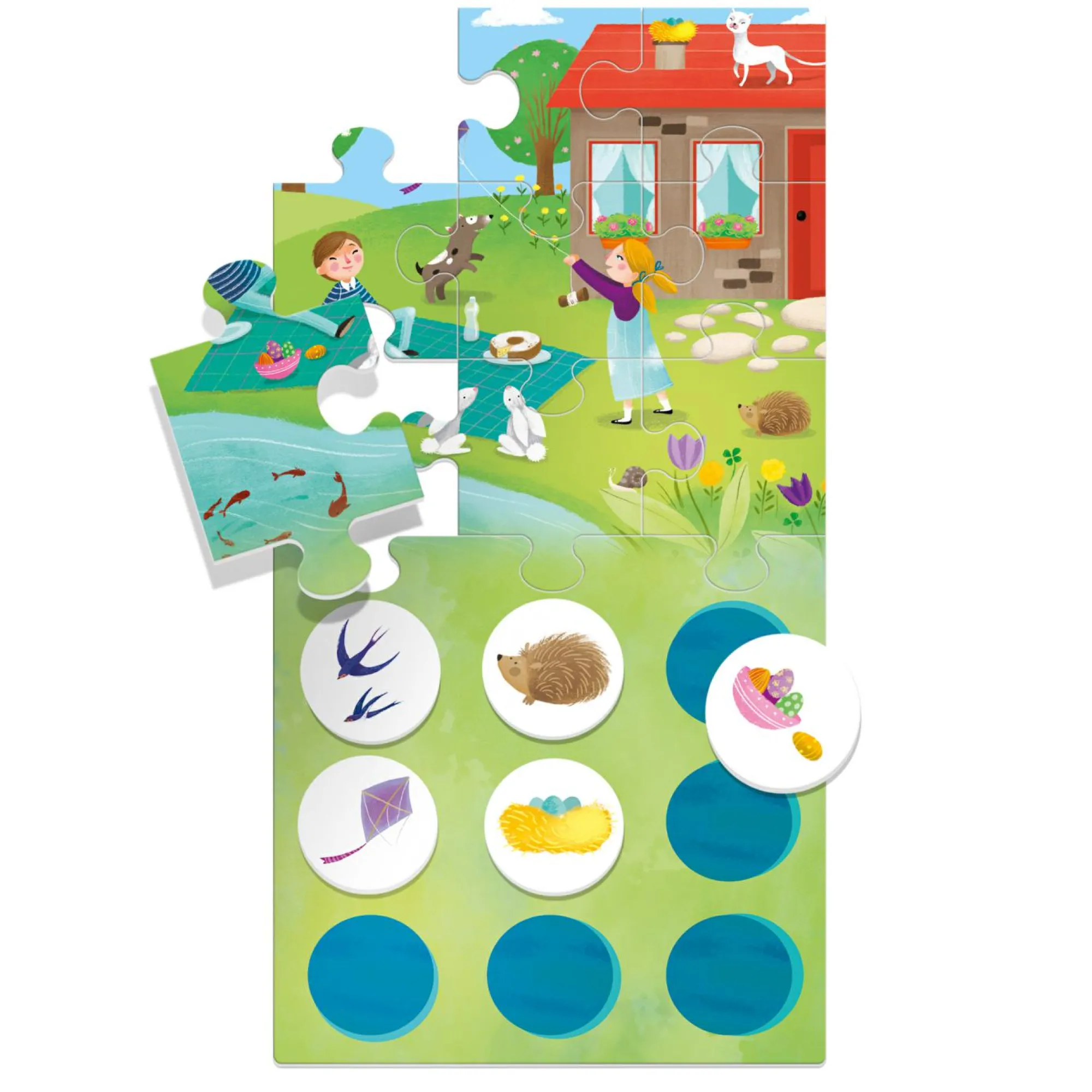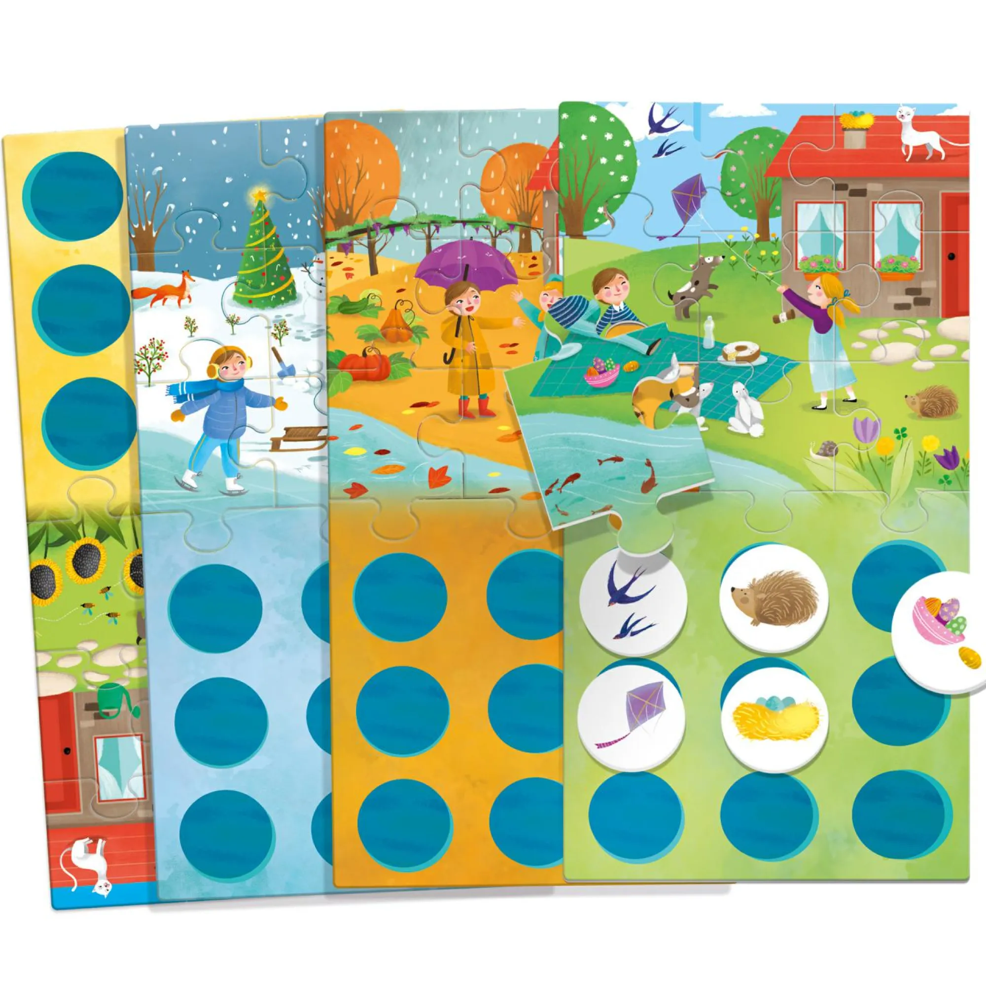 4 puzzle delle stagioni; 4 cartelle delle stagioni; 36 tasselli