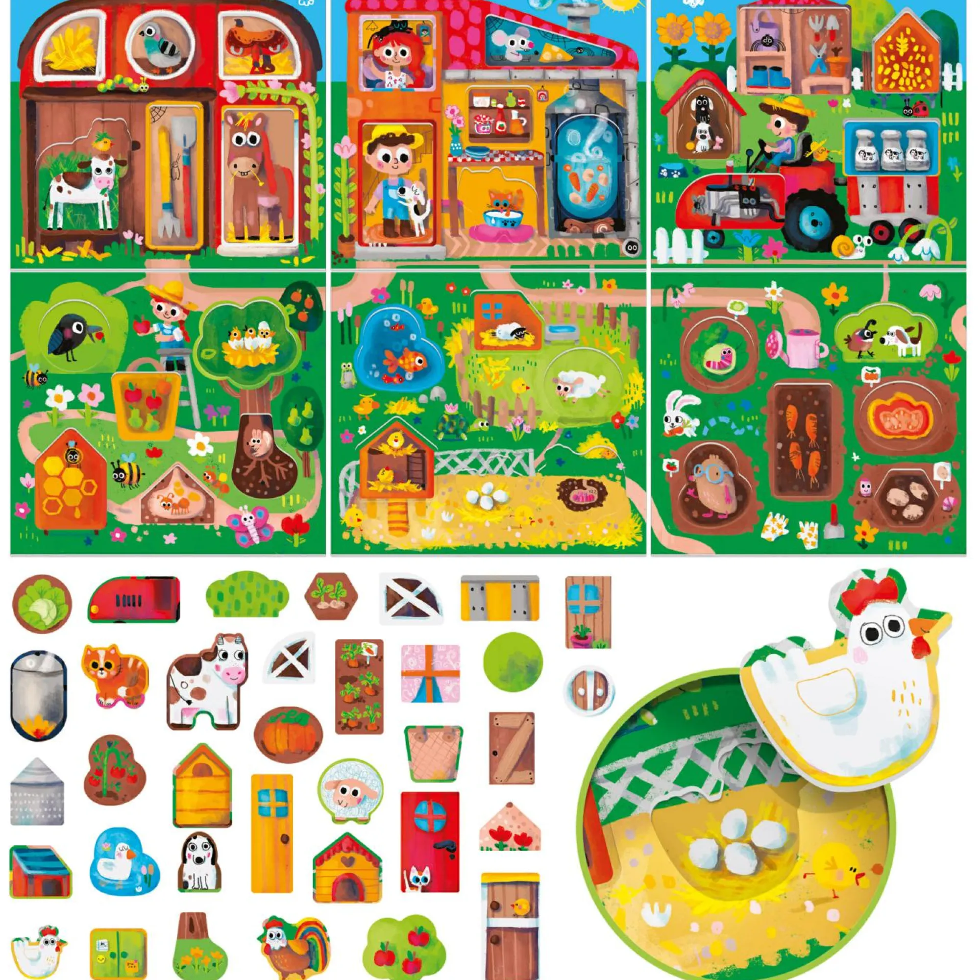 Chi dorme nella stalla? Cosa nasce nell’orto e dove si conserva il grano? Divertiti a fare tante scoperte nella fattoria in compagnia degli animali e dei suoi abitanti!