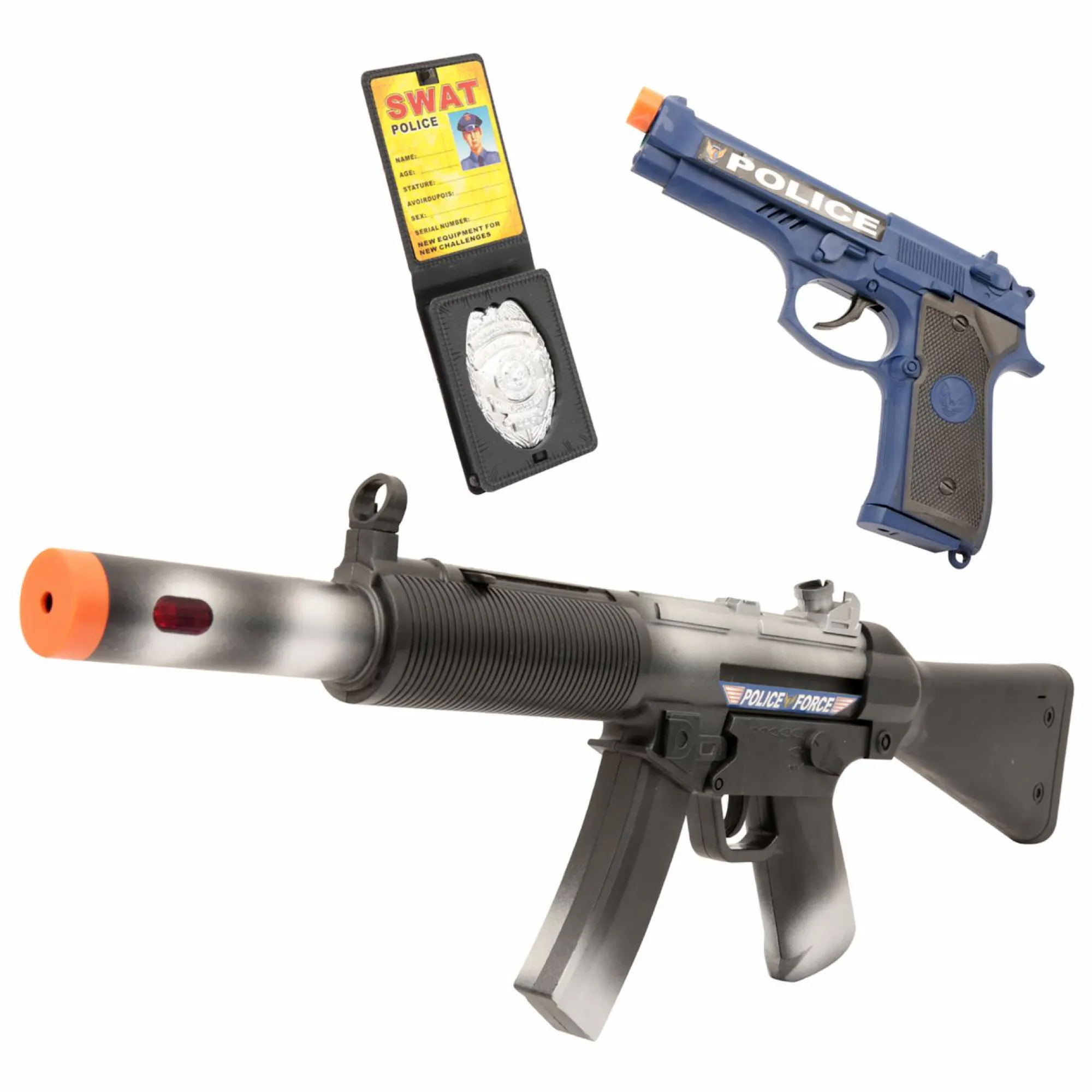 La confezione include: un fucile, una pistola, delle cuffie e un fischietto