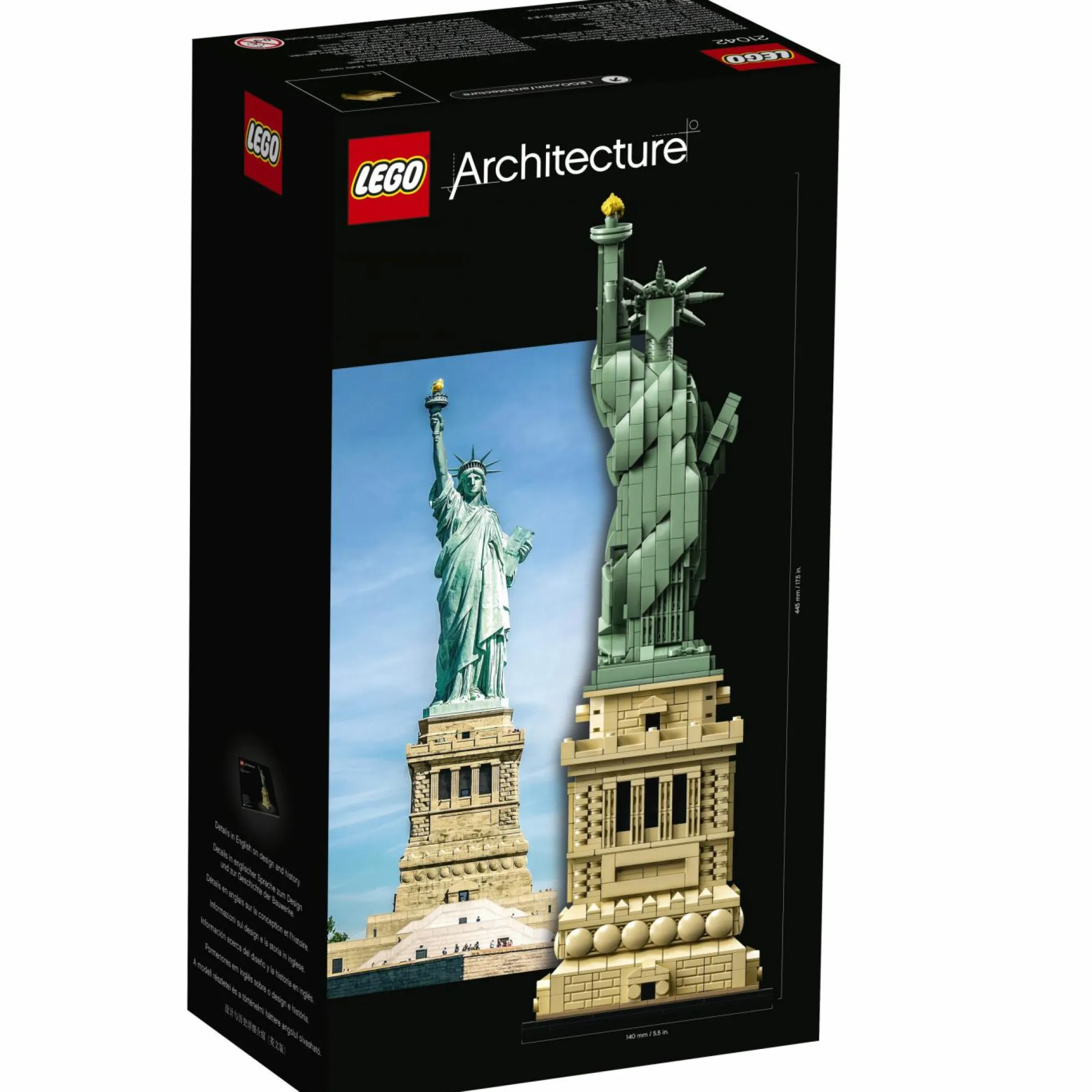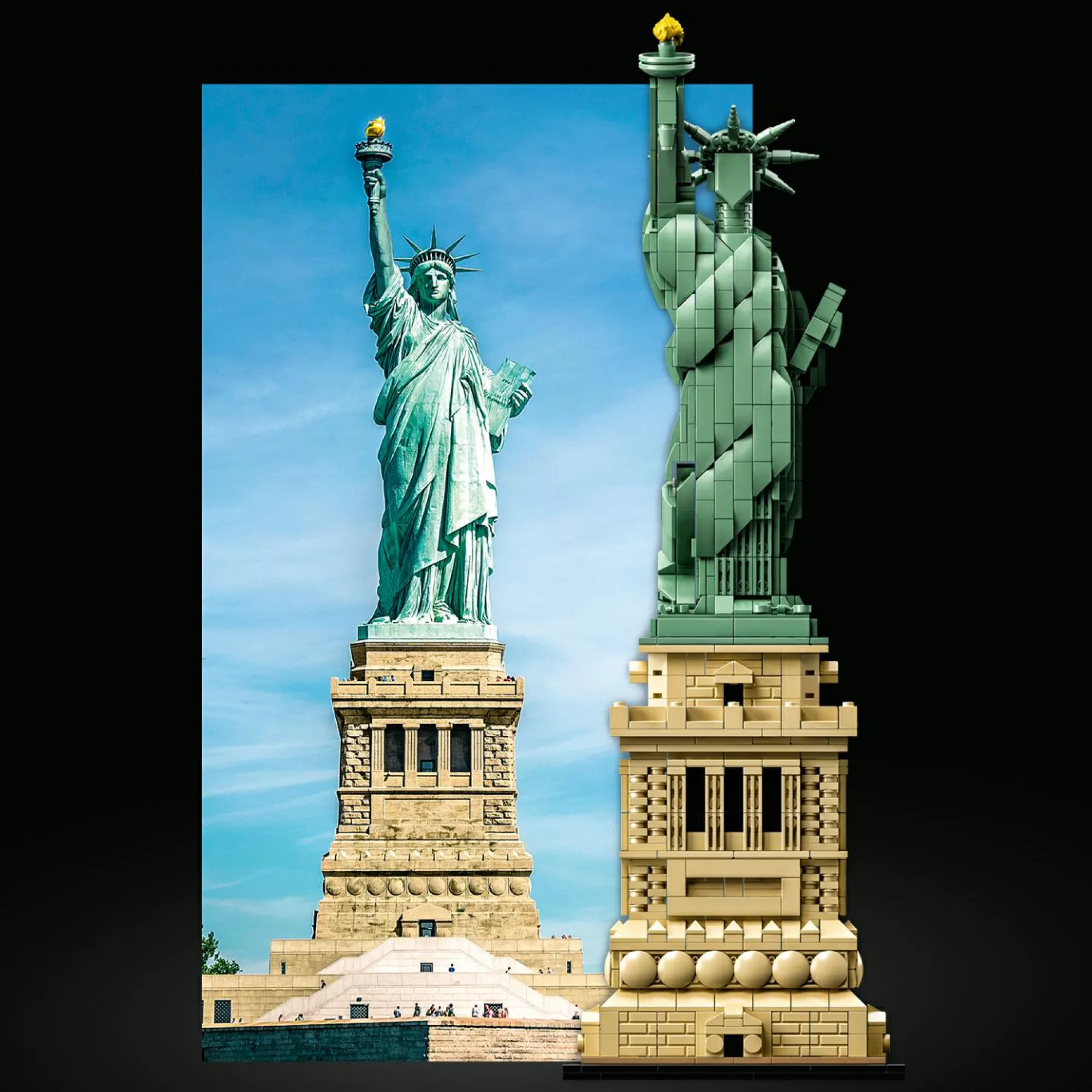 • Interpretazione LEGO® Architecture di uno dei punti di riferimento architettonici più famosi del mondo, la Statua della Libertà.