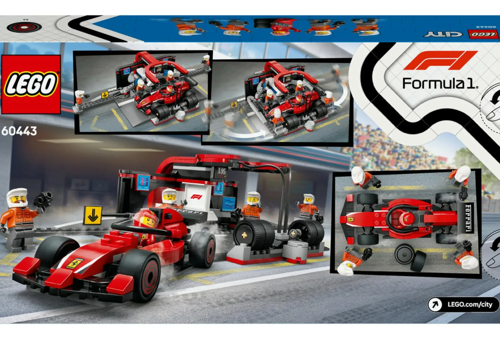 Cosa c’è nella scatola? Tutto ciò di cui i giovani hanno bisogno per costruire un pit stop, e una macchinina Ferrari da Formula 1, oltre alle minifigure del pilota e dei 4 meccanici ai box