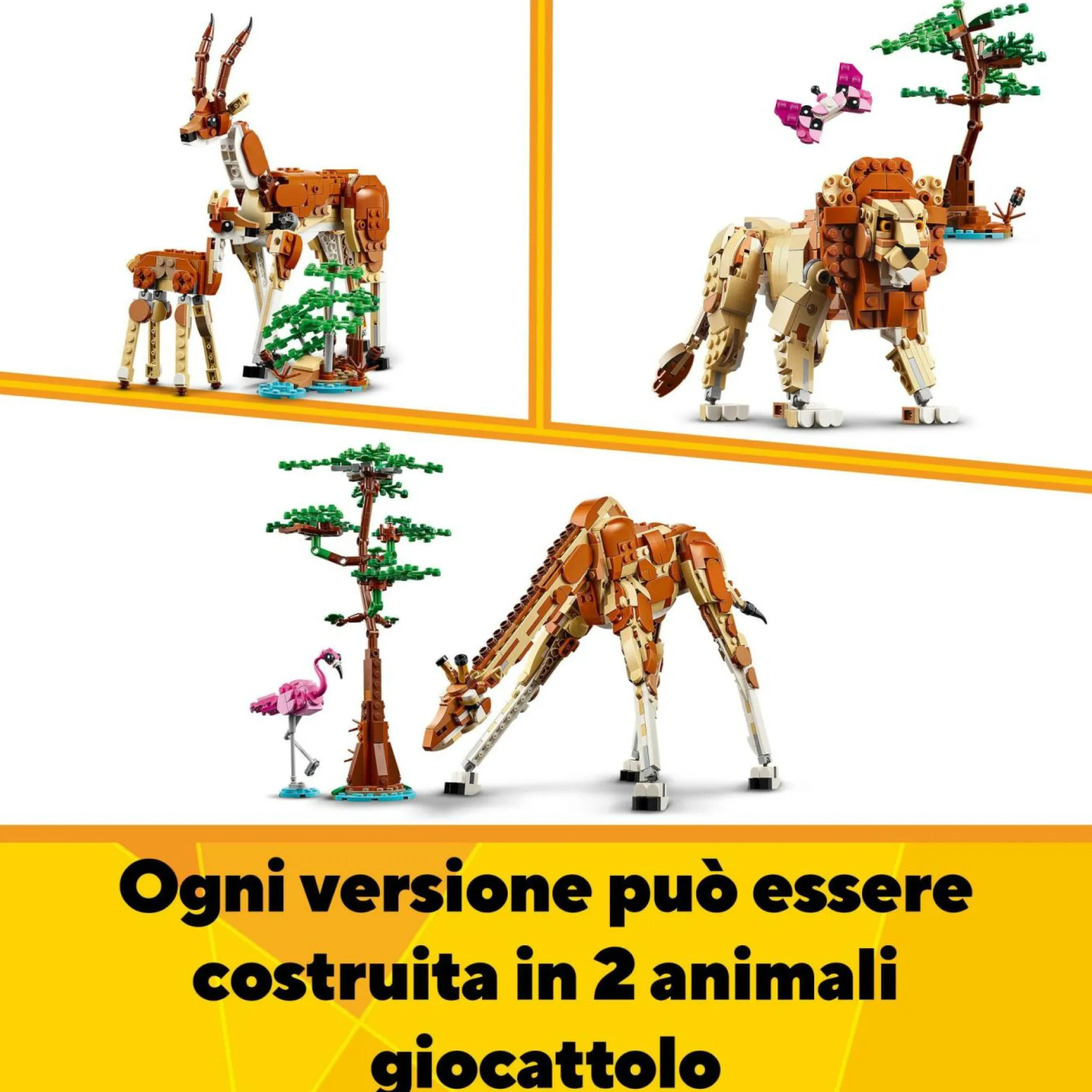 3 animali giocattolo per bambini in 1 set: il set di giochi LEGO Creator 3 in 1 Animali del Safari offre ai bambini e alle bambine da 9 anni in su 3 diversi coppie di animali LEGO da costruire con i mattoncini